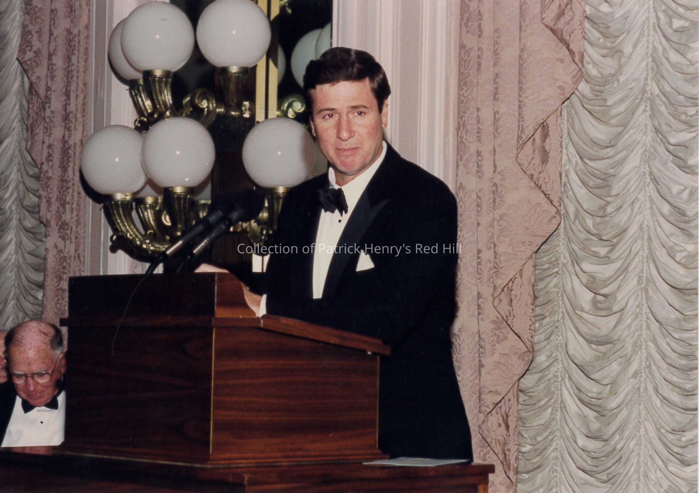 Governor George Allen (1952–) delivered a message at the dinner. Allen served as the 67th governor of Virginia from 1994 to 1998 and as a United States senator from Virginia from 2001 to 2007.