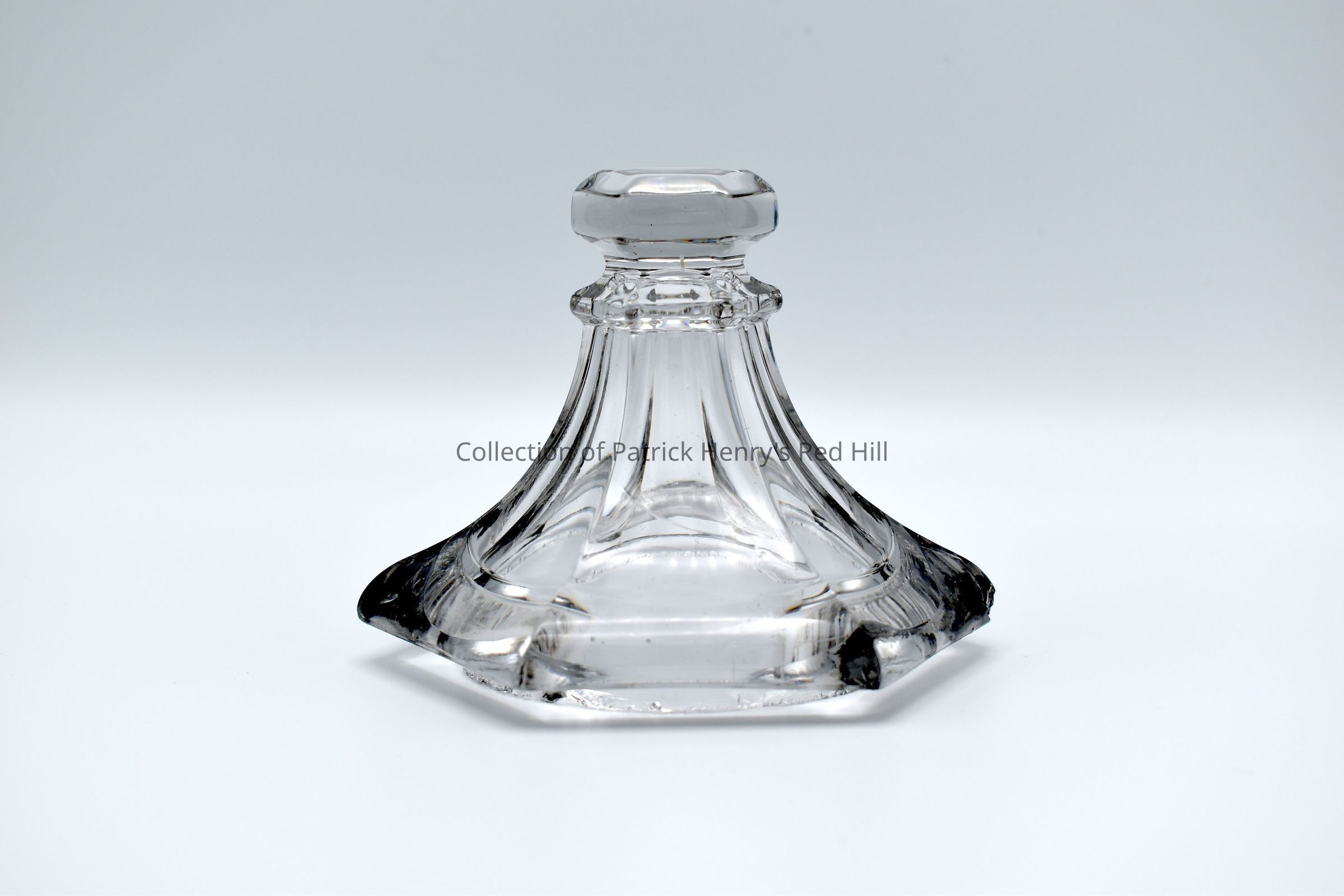 This is one of a matching set of cut glass, covered sweetmeat urn lids. Lucy Gray Henry Harrison (1857–1944), a great-granddaughter of Patrick Henry, owned these urns and used them at her Red Hill mansion.