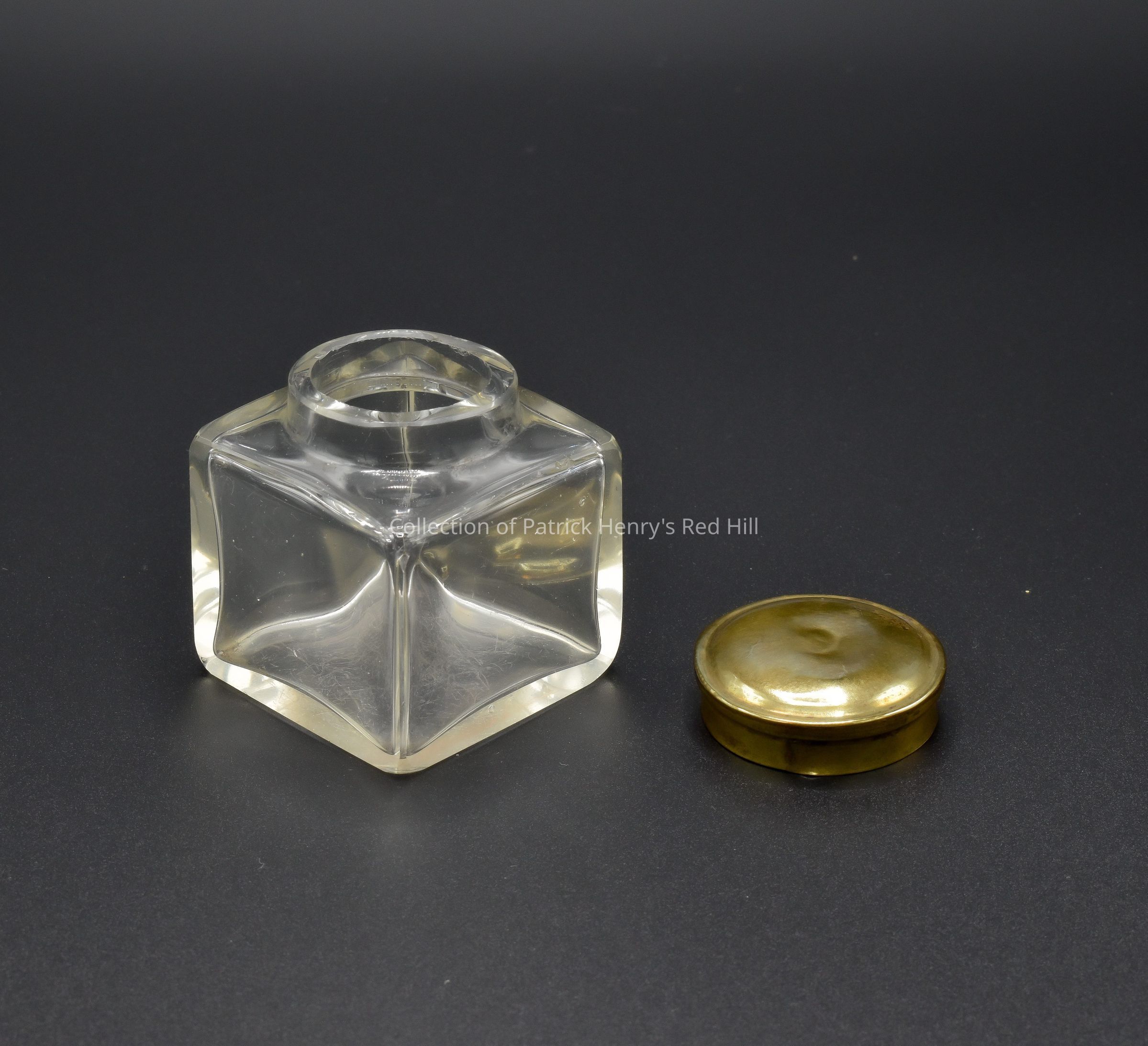 Brass top to crystal ink well. Smooth and round in shape,Collection
