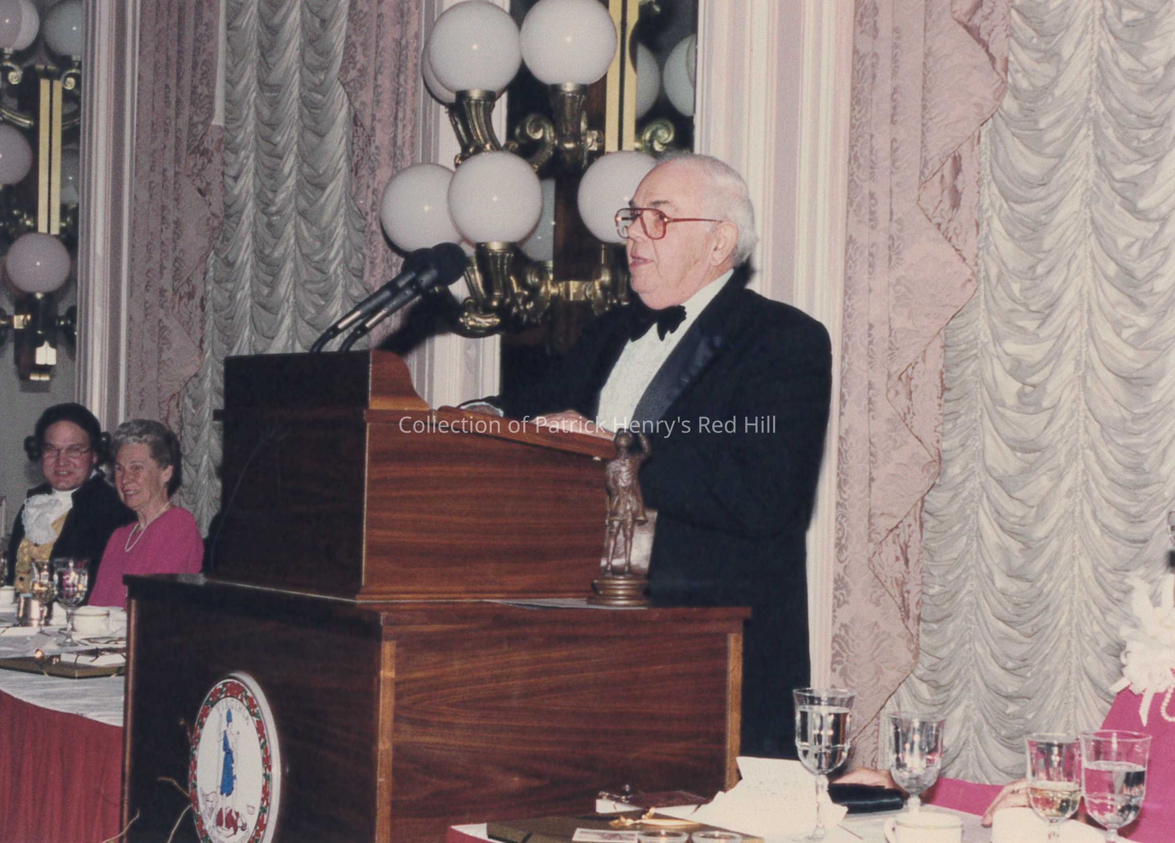 Irvin D. Walker (1922–2009) was a former PHMF president and gave the benediction to end the evening's program. Michael Owen Wells gave a speech as Governor Patrick Henry during the evening's events.