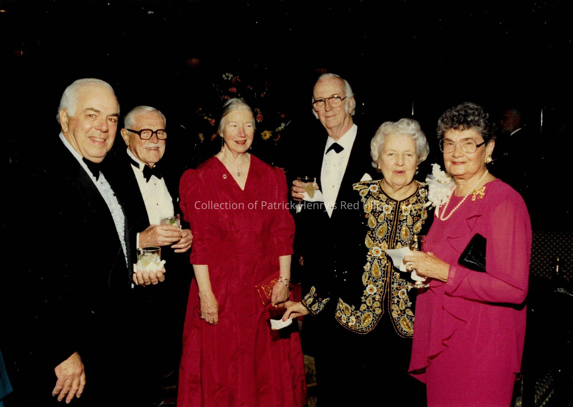 Carolyn Lusardi (1919–2009) was the current President of PHMF at the time of the event. She delivered the "Recognition of Distinguished Guests" and shared "Remembrances of Fifty Years." Irvin D. Walker (1922–2009) was a former PHMF president and gave the benediction to end the evening's program. Mrs. Virginia M. S. English (1909–2006) was a PHMF trustee during the time of the event. Dr. Bruce English (1921–2008) was her husband. Mrs. English was an avid historian and supporter of Red Hill.
