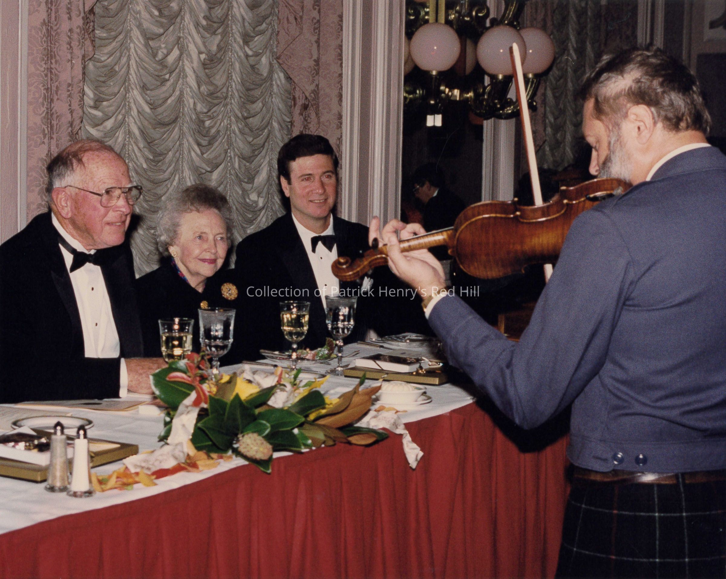Theodore W. Graves (1919–2014), who served a president of the PHMF from 1977-1991, gave the invocation for the dinner. Mrs. Katherine Godwin was the wife of former Virginia Governor Mills E. Godwin, Jr. (1914–1999), who was in attendance and the recipient of the Patrick Henry Award that evening. George Allen (1952–) was the Governor of Virginia at the time of this event and served as Governor from 1994 to 1998. John R. Turner is listed on the event program as also playing the bagpipes that evening.