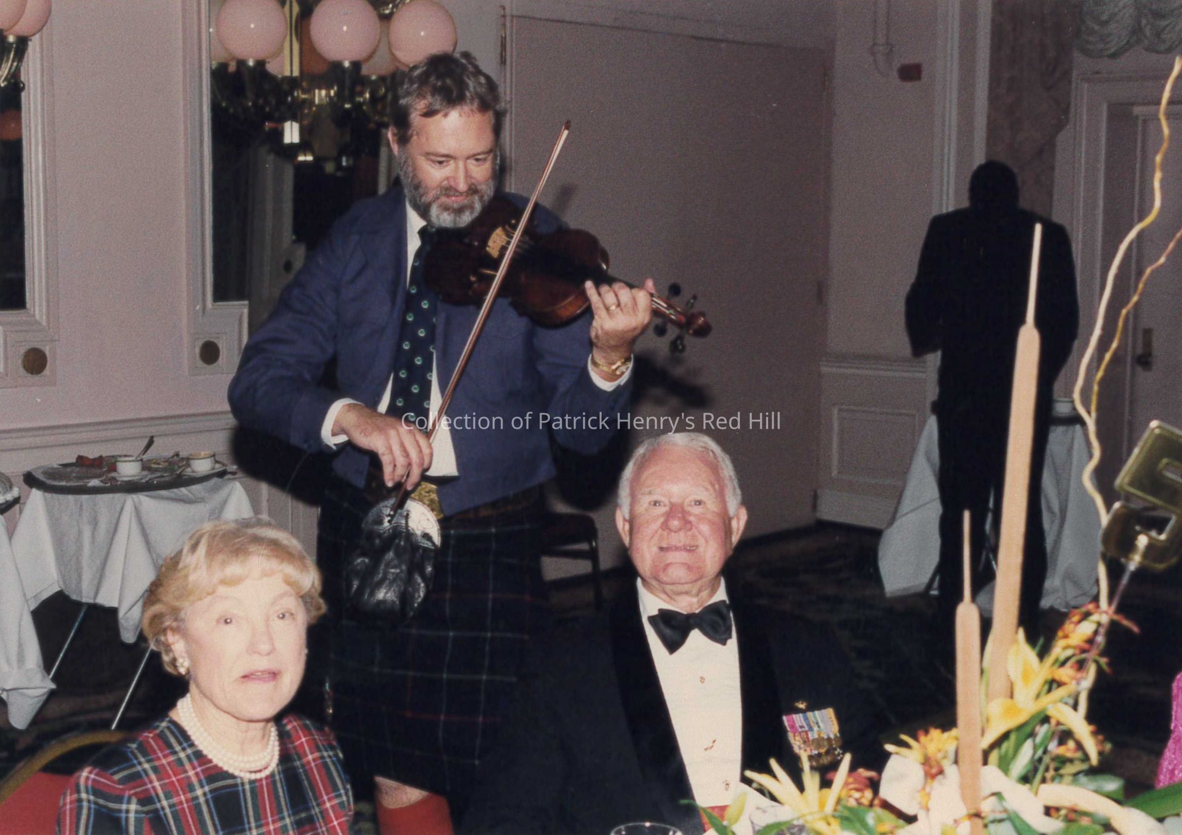 During the evening, John R. Turner entertained the guests by playing the violin and the bagpipes. Anna Ruth Gentry (1925–2017) was the secretary for the PHMF Board of Trustees at the time of this event. Her husband, Colonel Tracey Gentry (1922–2009), was a pilot who flew combat in World War II, the Korean War, and the Vietnam War. He was awarded the Legion of Merit and the Distinguished Flying Cross for his service. By his death in 2009, he had obtained the rank of Brigadier General.
