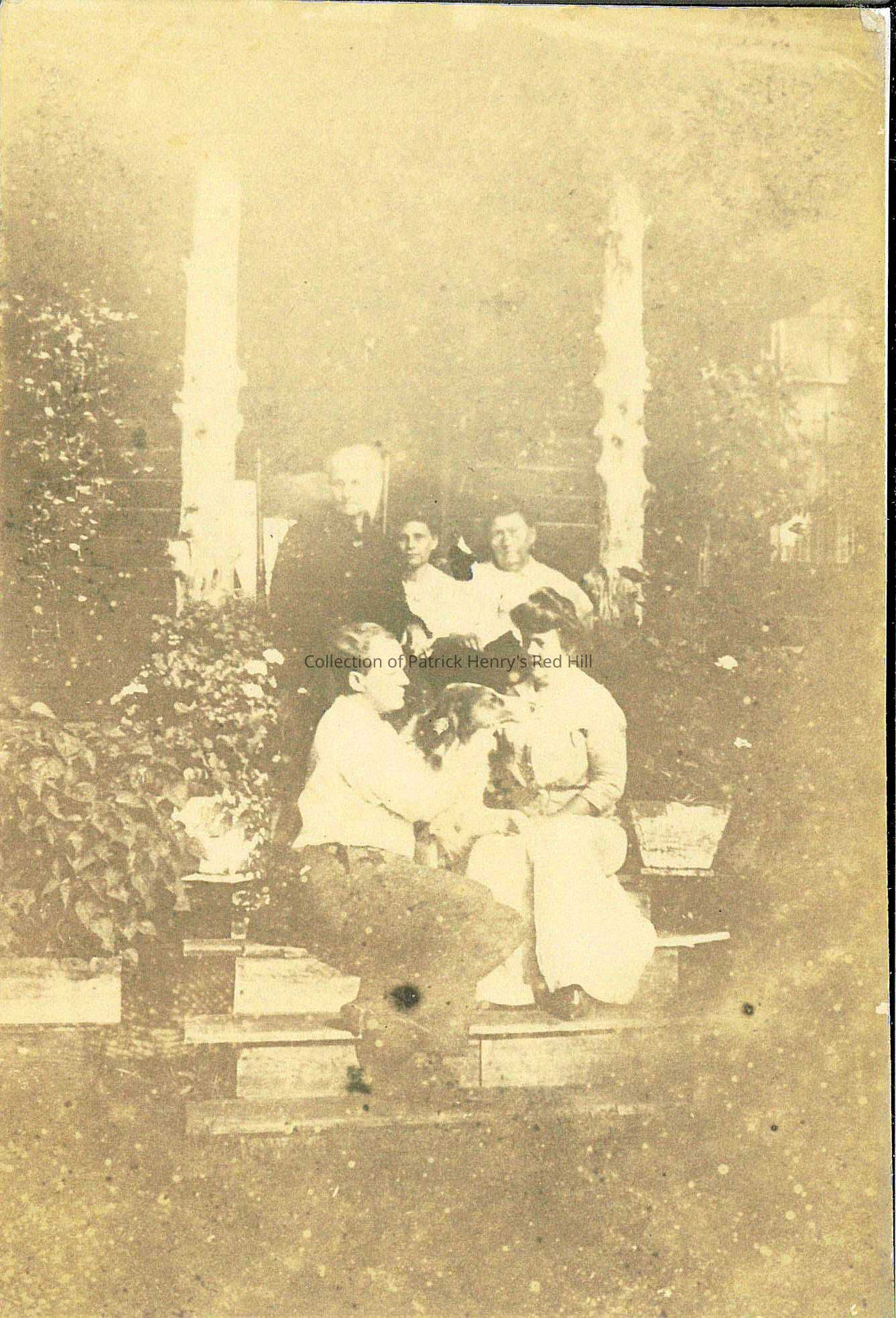Pattie's mother, Mary Taylor Wooten Redd, is the woman wearing black and sitting in the chair. She was born on August 27, 1844, in Henry County, Virginia. She married William Spotswood Redd, a great-great-grandson of Patrick Henry, on October 10, 1865. They had five children, including Pattie. At the time of this photograph, she was 72 years old. She died two years later, on April 26, 1918, and was buried at "Bellevue" in Henry County, Virginia.