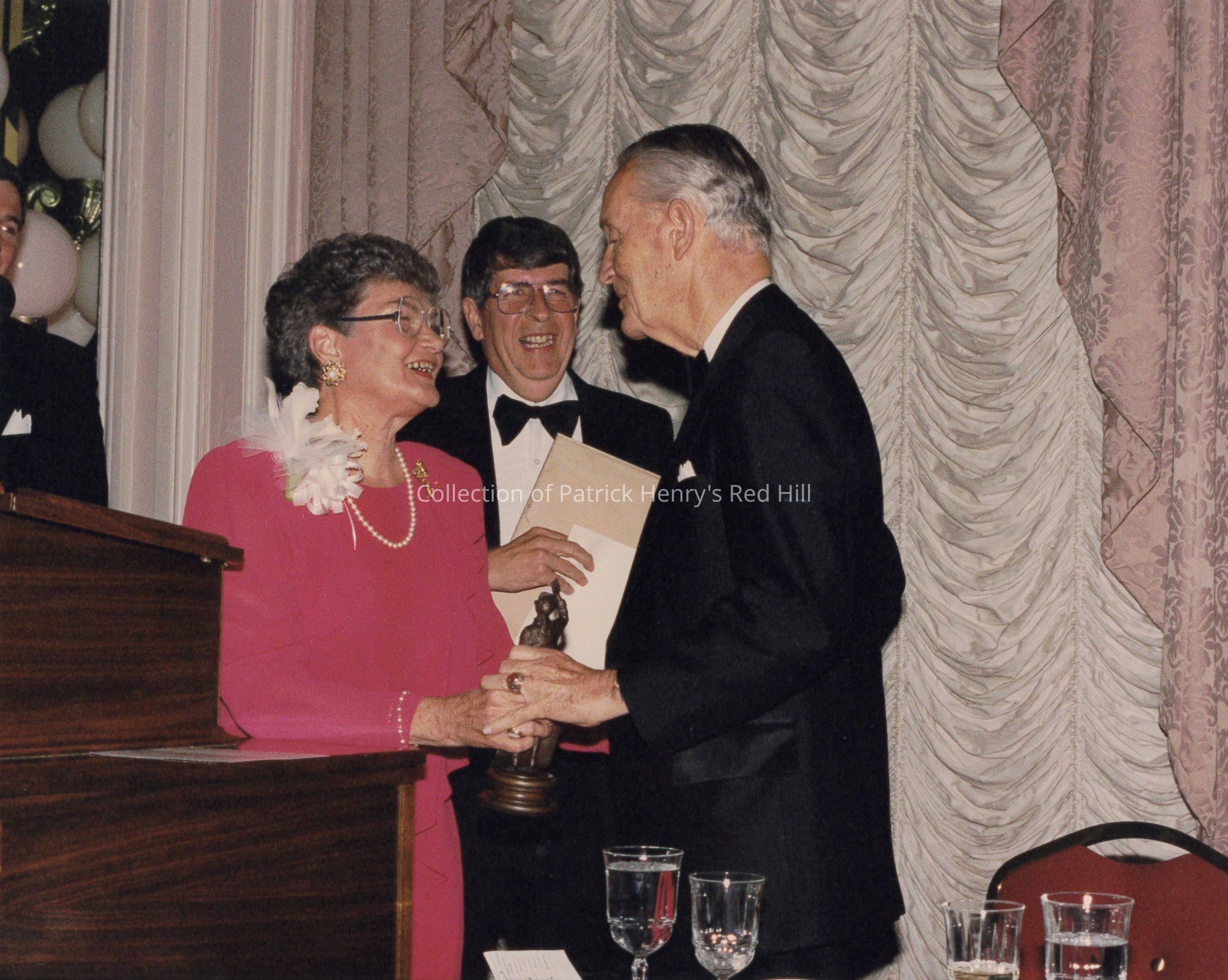 Carolyn Lusardi (1919–2009) was the current President of PHMF at the time of the event. She gave the "Recognition of Distinguished Guests" and shared "Remembrances of Fifty Years." Mills E. Godwin, Jr. (1914–1999) received the Patrick Henry Award that evening. He served as Governor of Virginia for two non-consecutive terms, from 1966-1970, and from 1974-1978. The PHMF awarded Godwin, Jr. the Patrick Henry Award for "distinguished service to the Commonwealth of Virginia." James M. Elson (1932–2021) was the Executive Vice President of the PHMF at the time of the event.