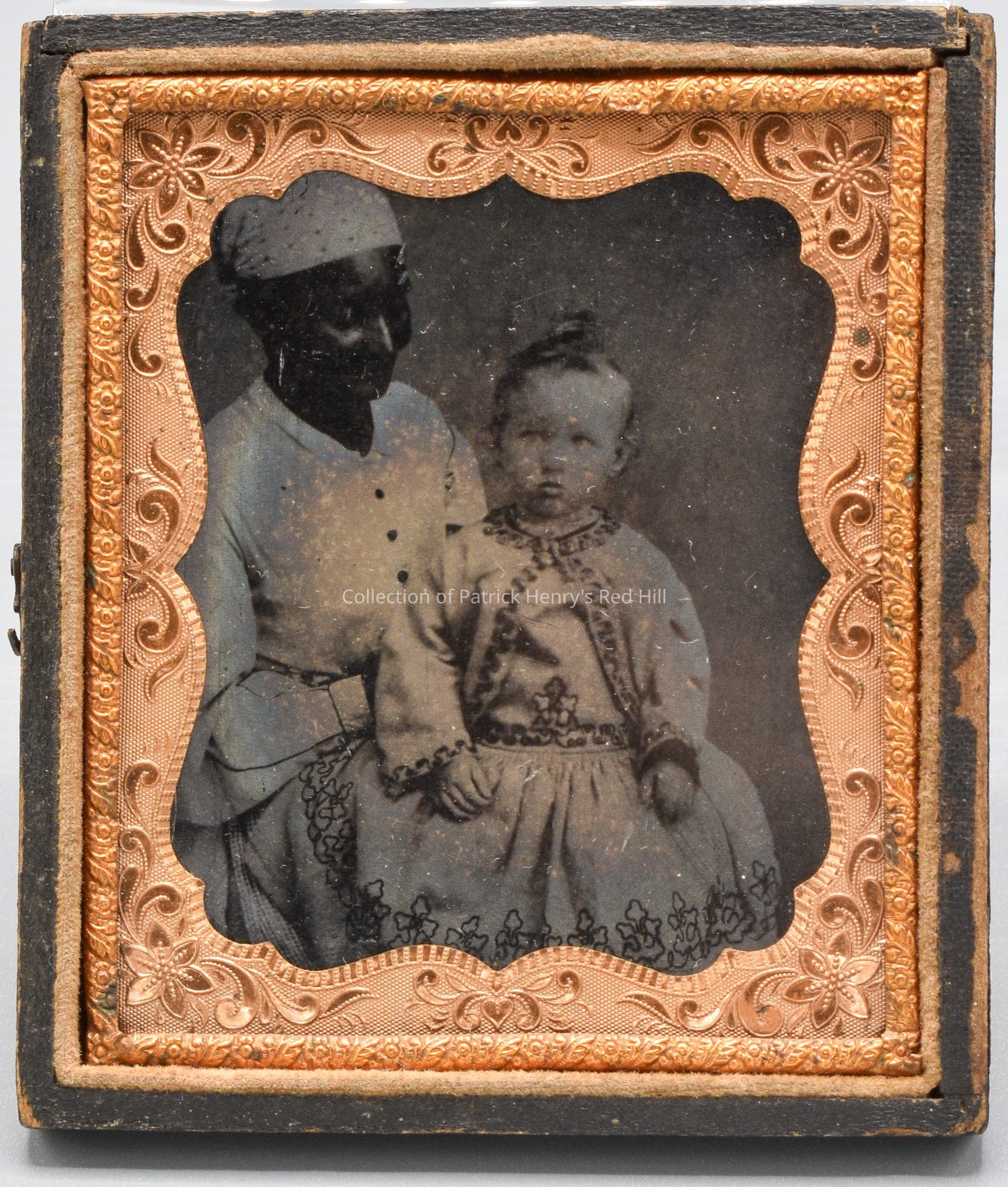 This tintype is believed to picture a descendant of Patrick Henry possibly related to Margaret Henry Ottarson (1911–1981), a great-great-granddaughter of Henry. The Black woman was likely a formerly enslaved nanny of the family at Windstone plantation.