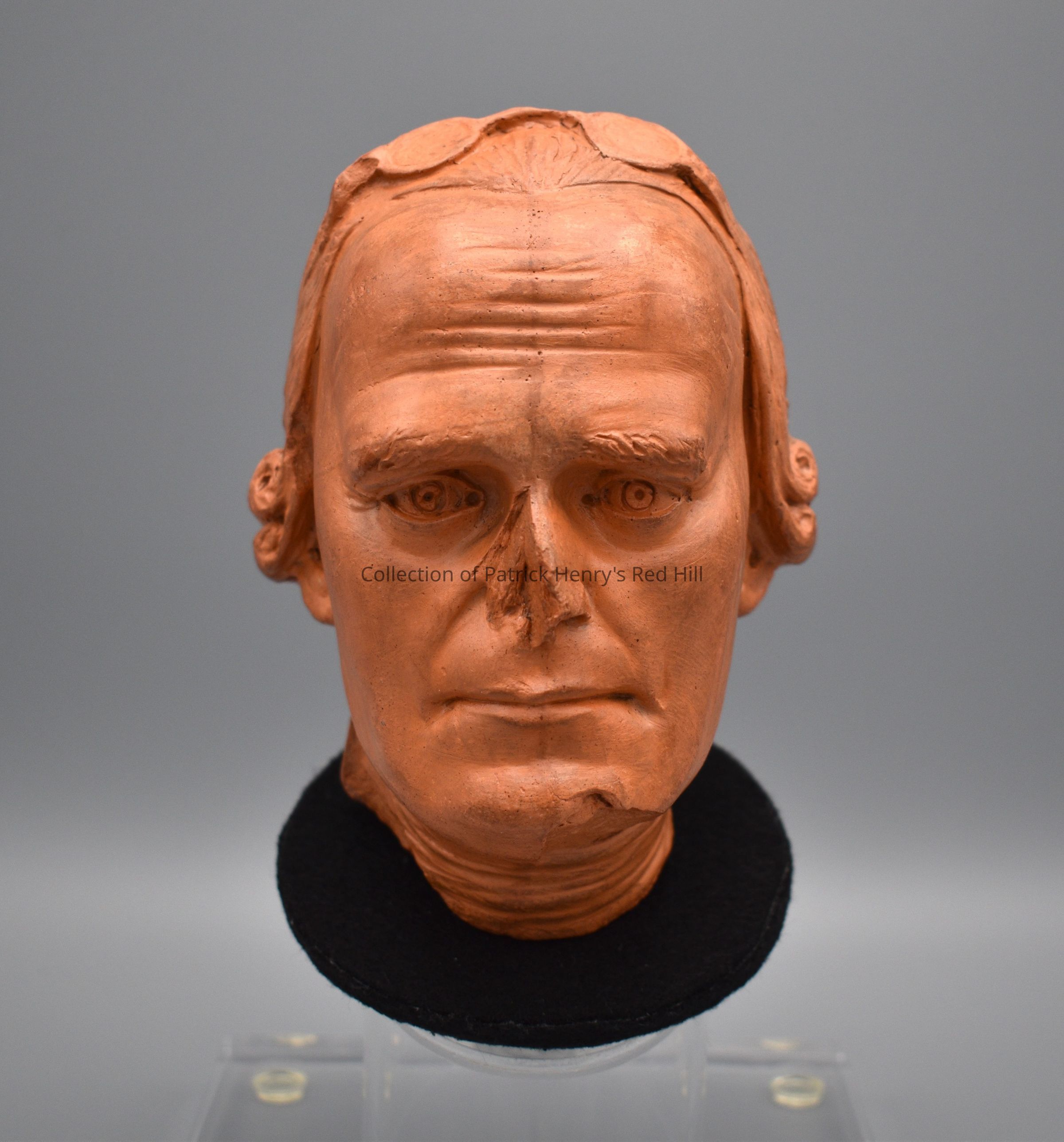 This terra cotta bust was made from life sometime in 1788 by an Italian artist traveling in Virginia at the time. Originally a three-quarter-length bust, the entire piece from the neck down was missing before the PHMF acquired the bust.