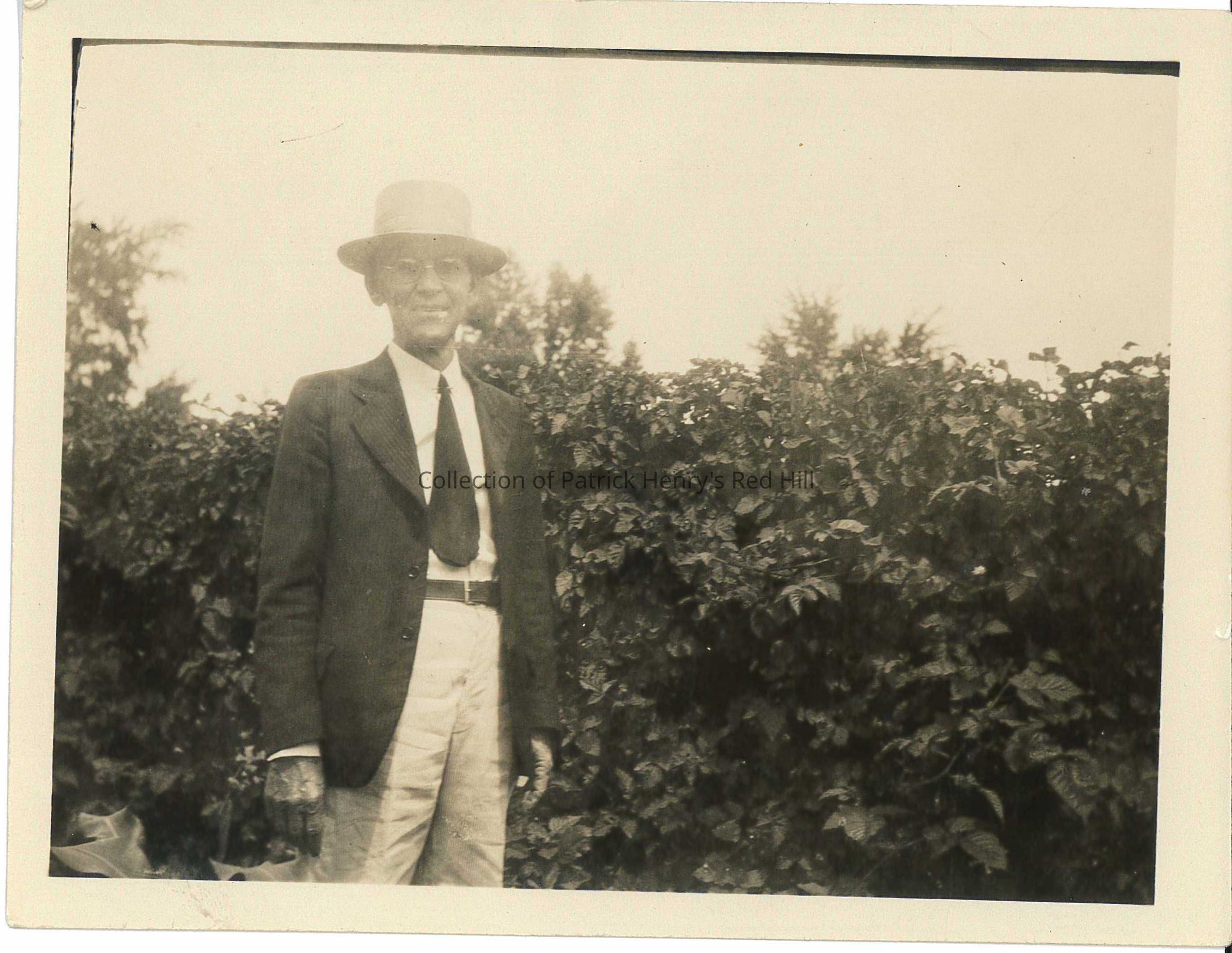 This black-and-white photograph depicts Patrick Henry Fontaine (1869–1959), a great-grandson of Patrick Henry. Fontaine is descended from Patrick and Sarah Shelton Henry's oldest daughter, Martha Henry Fontaine (1755–1818), whose son is Col. Patrick Henry Fontaine (1775–1852), whose son is Edward Fontaine (1814–1884), whose son is the donor, Patrick Henry Fontaine.