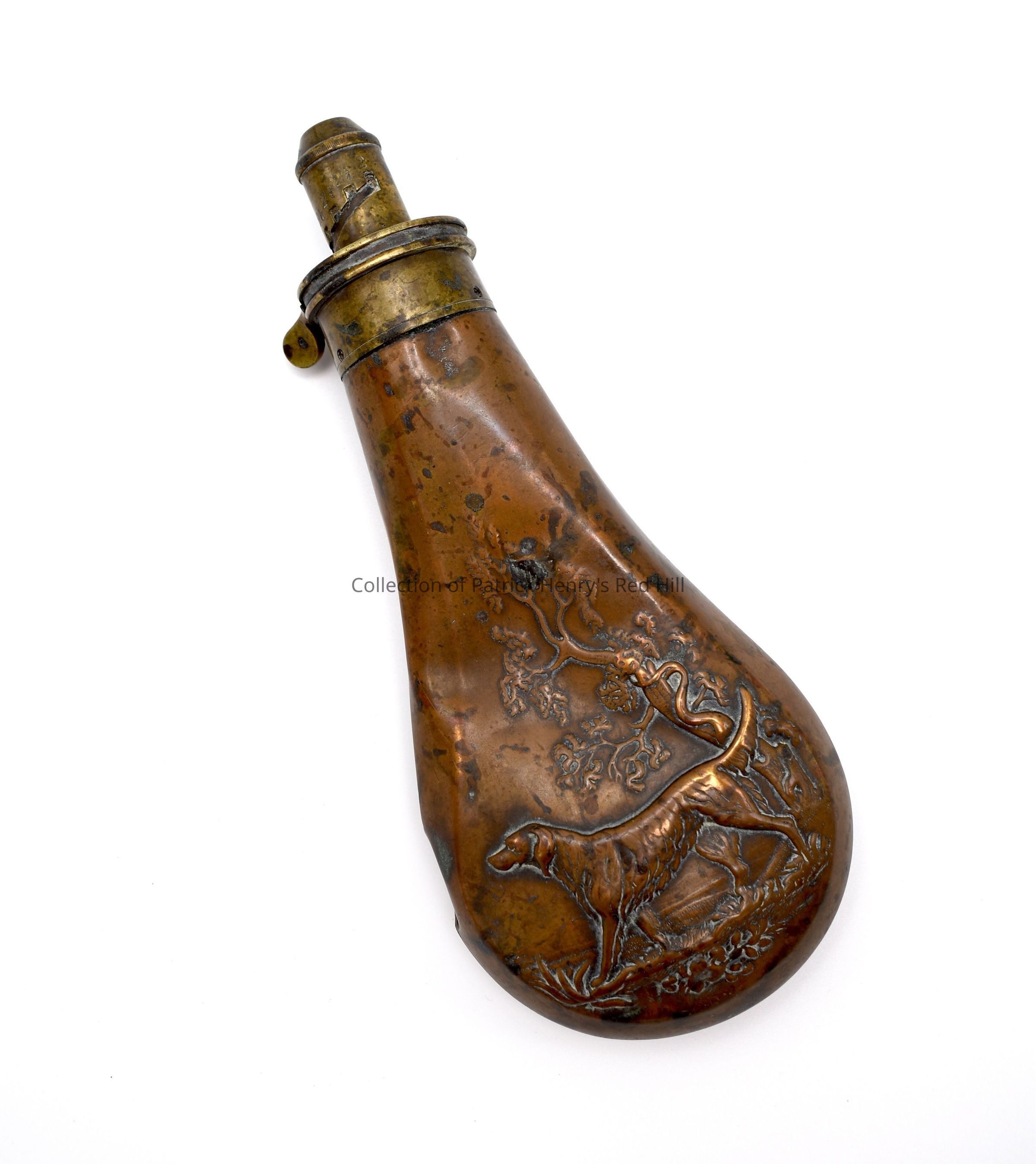 This powder flask belonged to William Wirt Henry Jr. (1860–1941), a great-grandson of Patrick Henry.