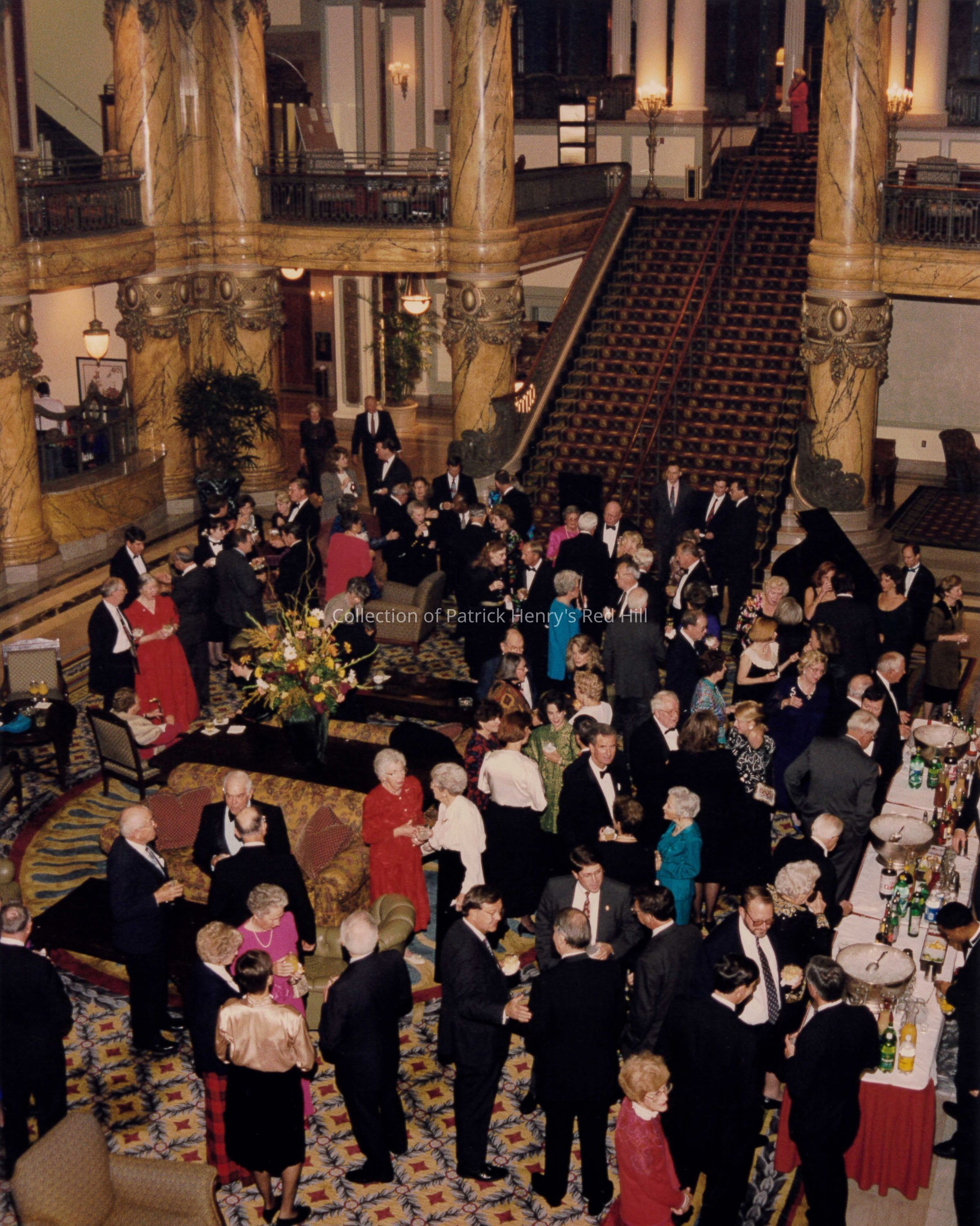 This photograph was taken the evening of the event, during the pre-dinner reception. The photo shows a large crowd of guests milling about in the rotunda of the Jefferson Hotel in Richmond, Virginia. None of the individuals in the photo are identified.