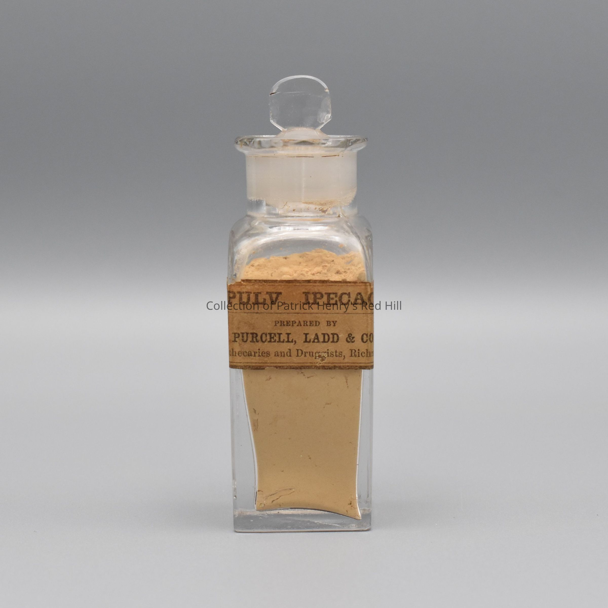 On September 4, 2001, Rose Gammon Garrett donated the medicine chest (01.31.1) and its contents (01.31.2-25) to the Patrick Henry Memorial Foundation.
