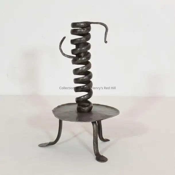This is an iron candleholder, known specifically as a Rat de Cave candleholder. The French name translates to "cellar rat." These candlesticks were meant to be used throughout the home, particularly in the cellar.