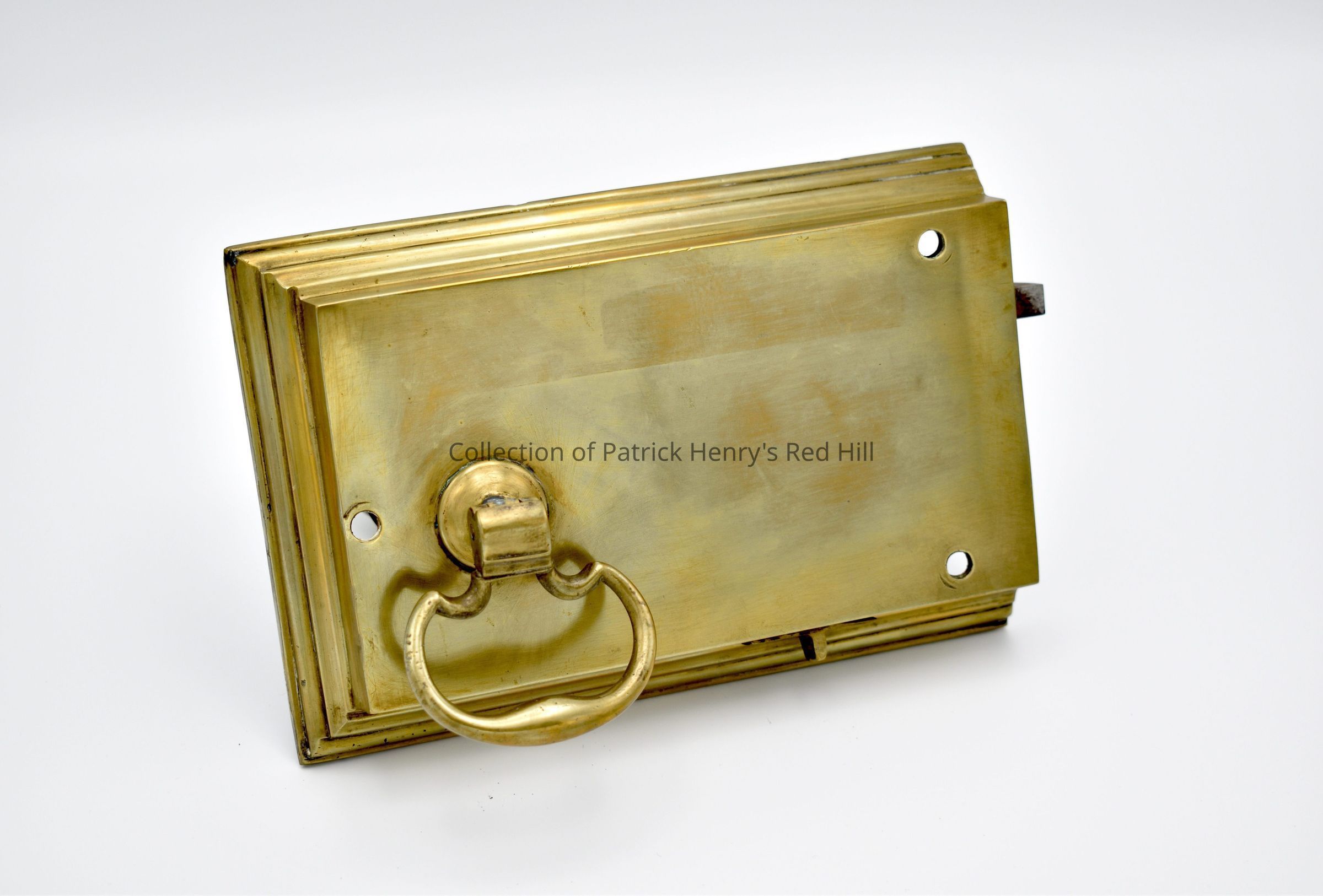 This brass rim lock was one of seven bought using money received as payment for Patrick Henry's defense of Richard Randolph in a 1793 murder trial in which he was accused of murdering the newborn child of his sister-in-law.