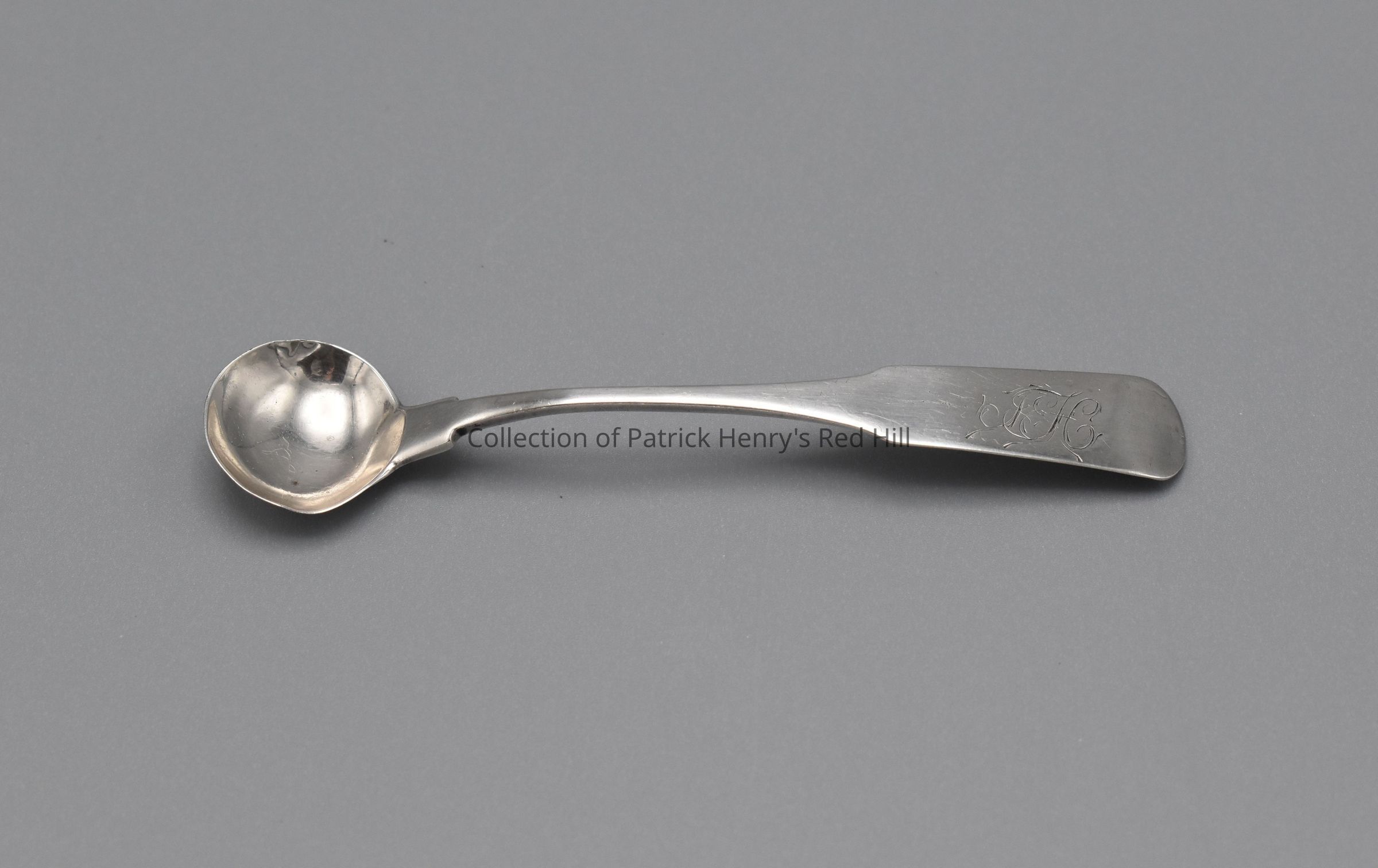 This is one of a set of silver salt spoons commissioned by John (1796–1868) and Elvira McClelland Henry (1808–1875) while they were living at Red Hill. The spoons were designed to accompany a set of four silver saltcellars (76.19.1-4), originally owned by Patrick Henry and later inherited by John.