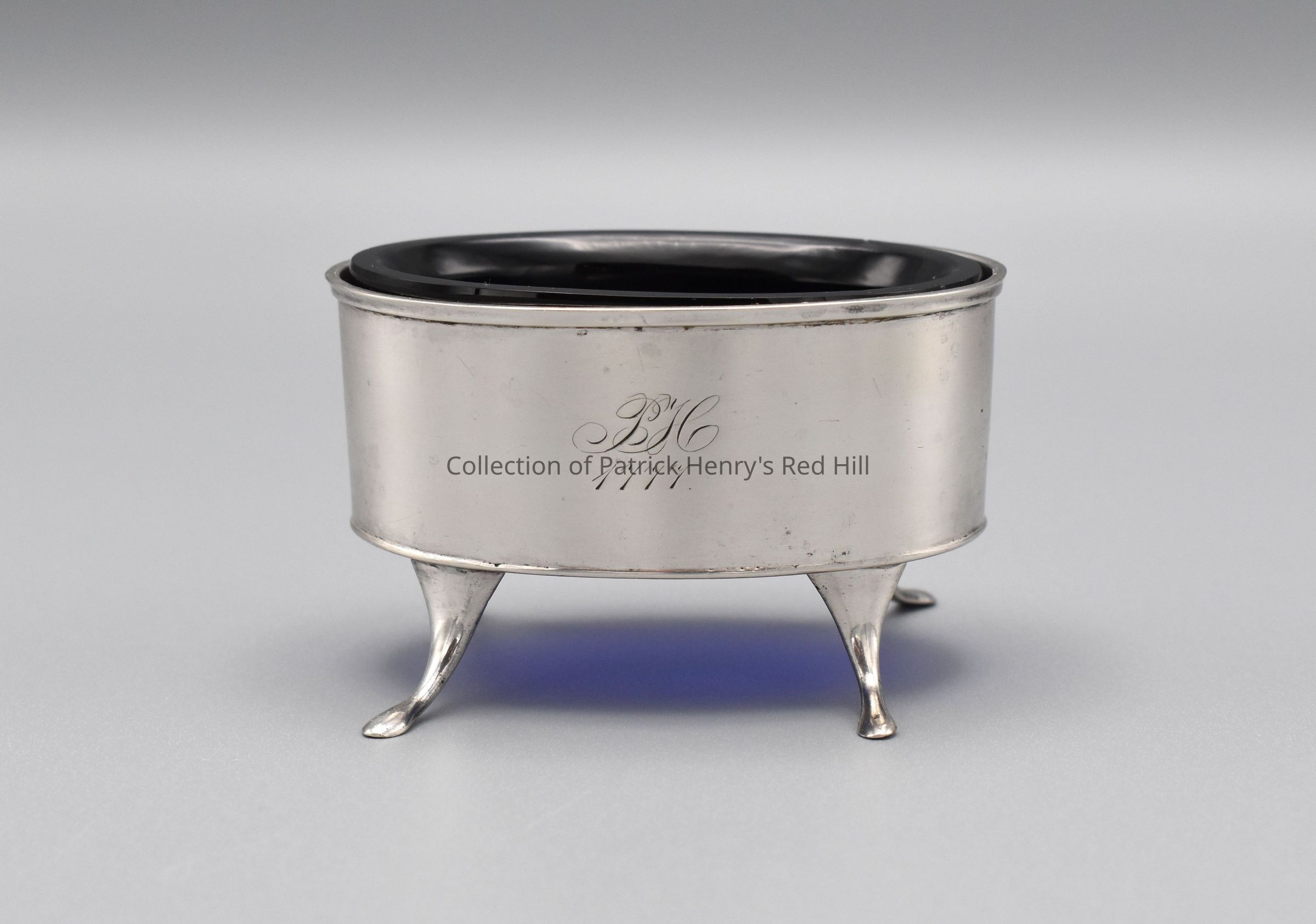 This coin silver saltcellar is one of a set originally belonging to Patrick Henry.