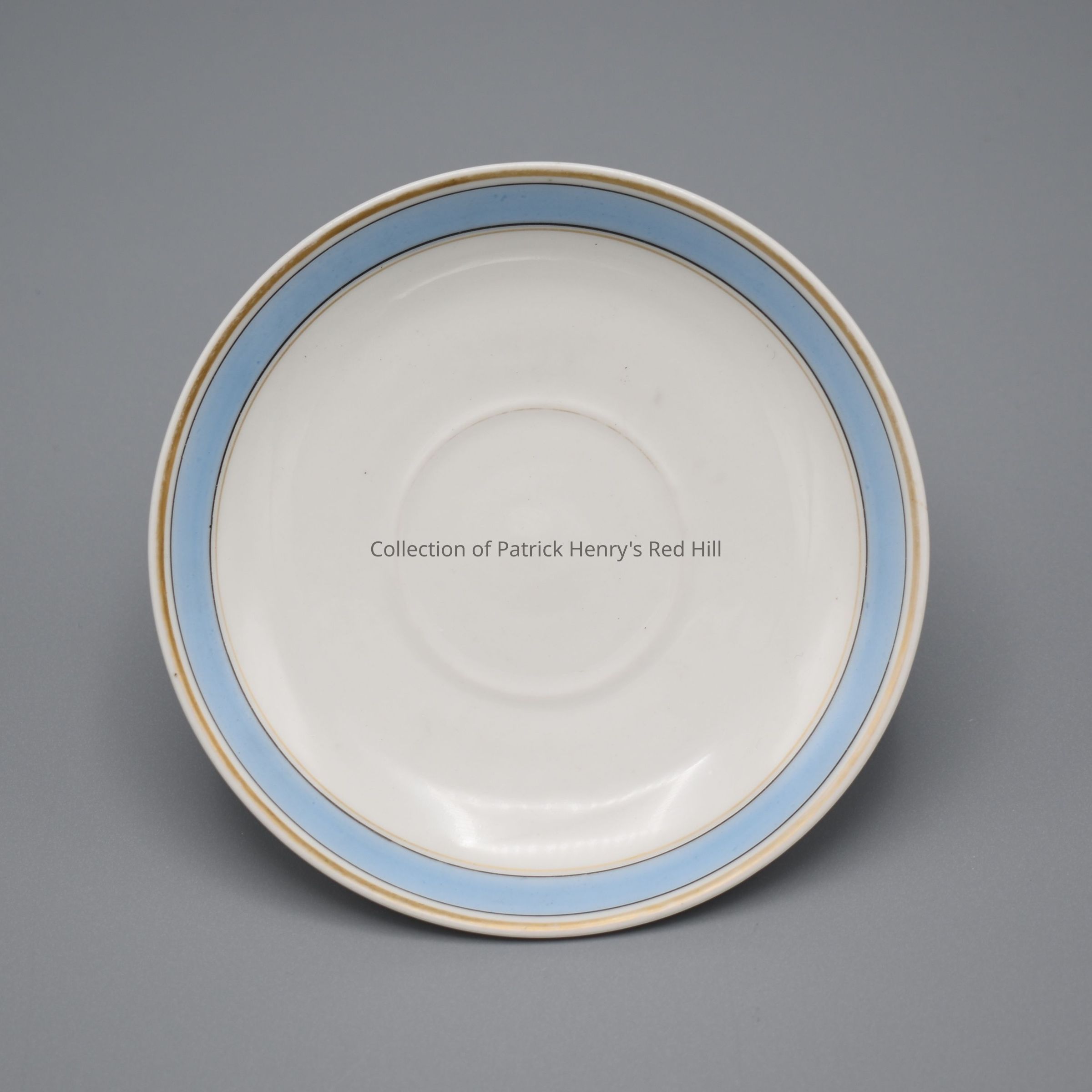 This saucer is part of a porcelain tea set that belonged to Margaret Ann Henry Miller (1827–1881). Margaret Ann Henry was born at Red Hill, the oldest child of John (1796–1868) and Elvira McClelland Henry (1808–1875), and a granddaughter of Patrick Henry through her father’s side. She married William Alexander Miller (1824–1923) in 1849 and the couple moved to Lynchburg, where they lived for the rest of their lives. Mr. Miller purchased this china for his wife sometime after their marriage.