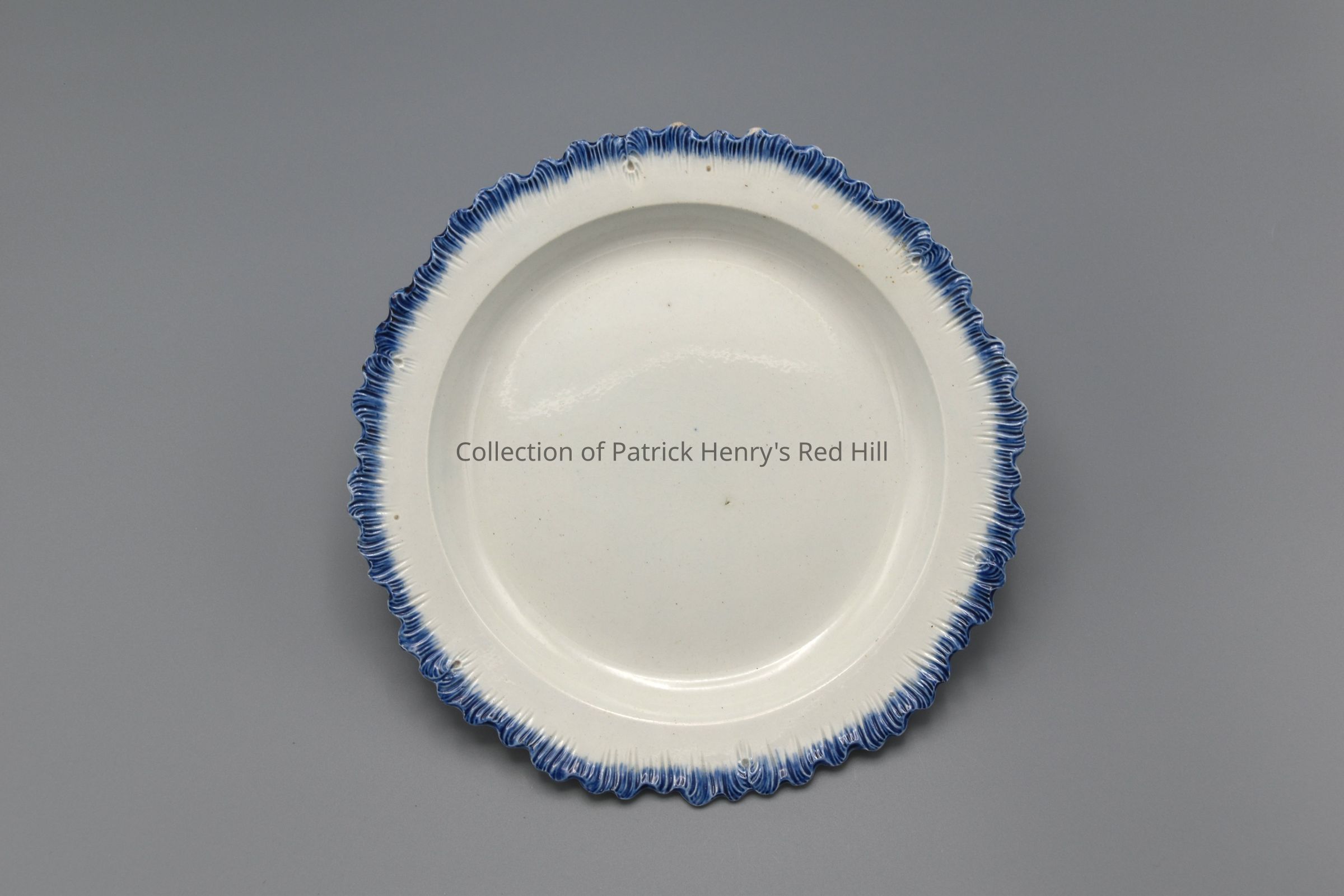 Patrick Henry owned a large set of shell- or feather-edged plates at Red Hill, which likely looked much like this one. According to the estate inventory of Red Hill, taken on September 11, 1802, Henry possessed seven blue-edged earthen breakfast plates and 16 blue-edged earthen plates.