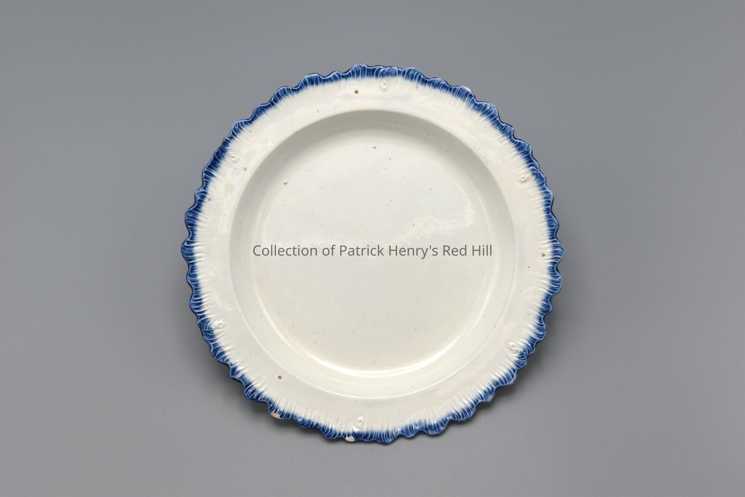 Patrick Henry owned a large set of shell- or feather-edged plates at Red Hill, which likely looked much like this one. According to the estate inventory of Red Hill, taken on September 11, 1802, Henry possessed seven blue-edged earthen breakfast plates and 16 blue-edged earthen plates.