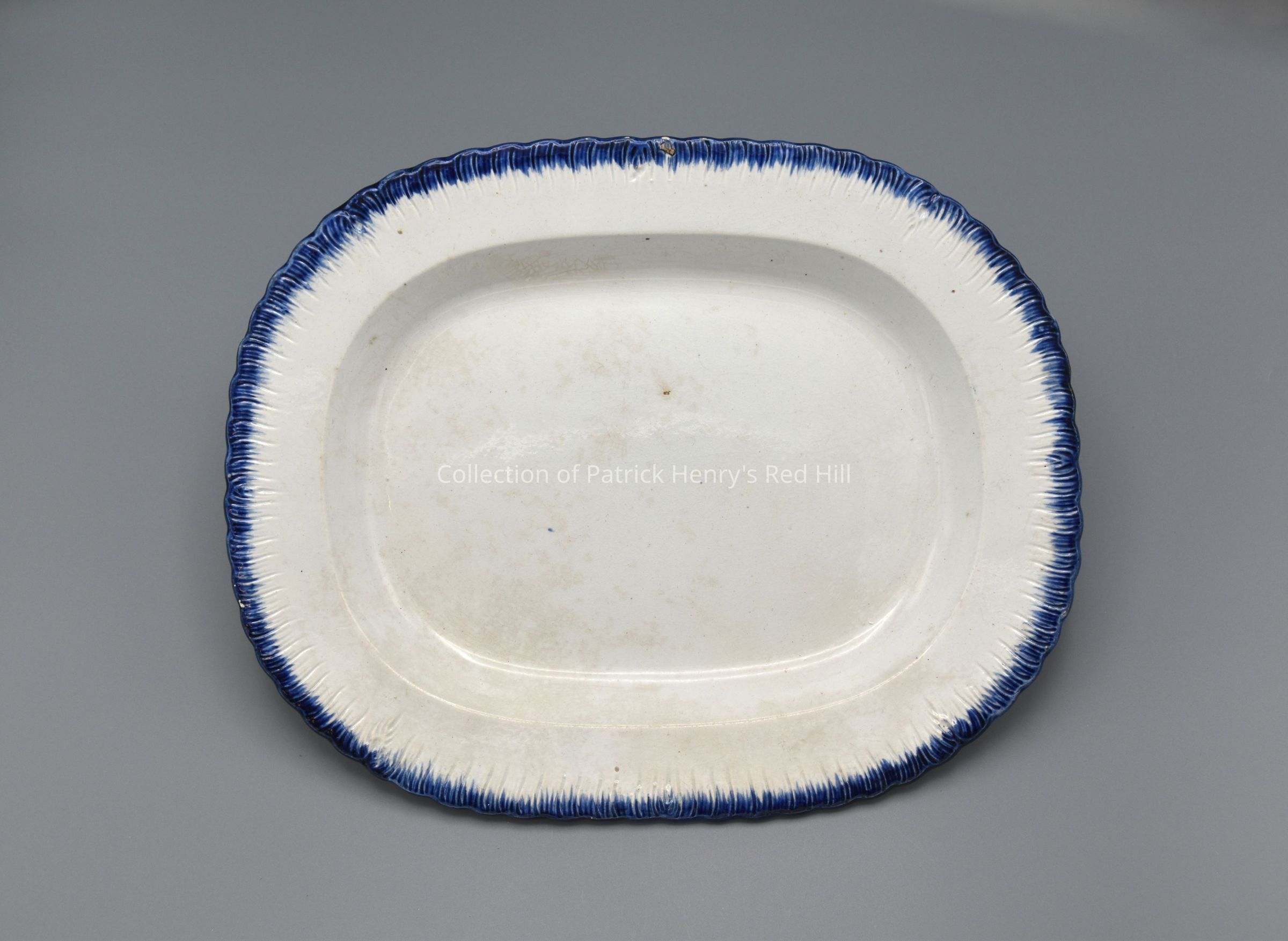 Patrick Henry owned a large set of shell- or feather-edged plates at Red Hill, which likely looked much like this one. According to the estate inventory of Red Hill, taken on September 11, 1802, Henry possessed seven blue-edged earthen breakfast plates and 16 blue-edged earthen plates.