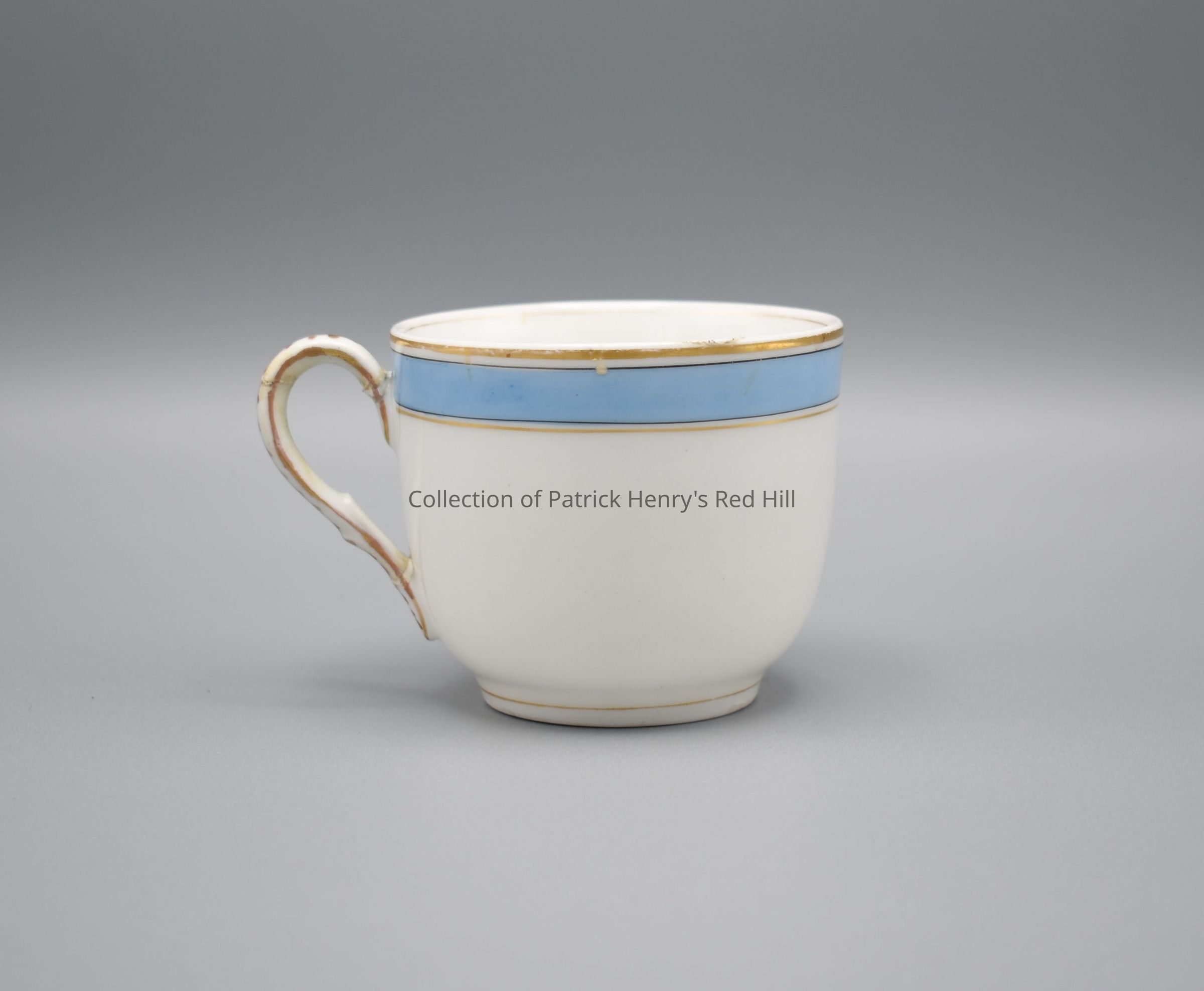 This teacup is part of a porcelain tea set that belonged to Margaret Ann Henry Miller (1827–1881). Margaret Ann Henry was born at Red Hill, the oldest child of John (1796–1868) and Elvira McClelland Henry (1808–1875), and a granddaughter of Patrick Henry through her father’s side. She married William Alexander Miller (1824–1923) in 1849 and the couple moved to Lynchburg, where they lived for the rest of their lives. Mr. Miller purchased this china for his wife sometime after their marriage.
