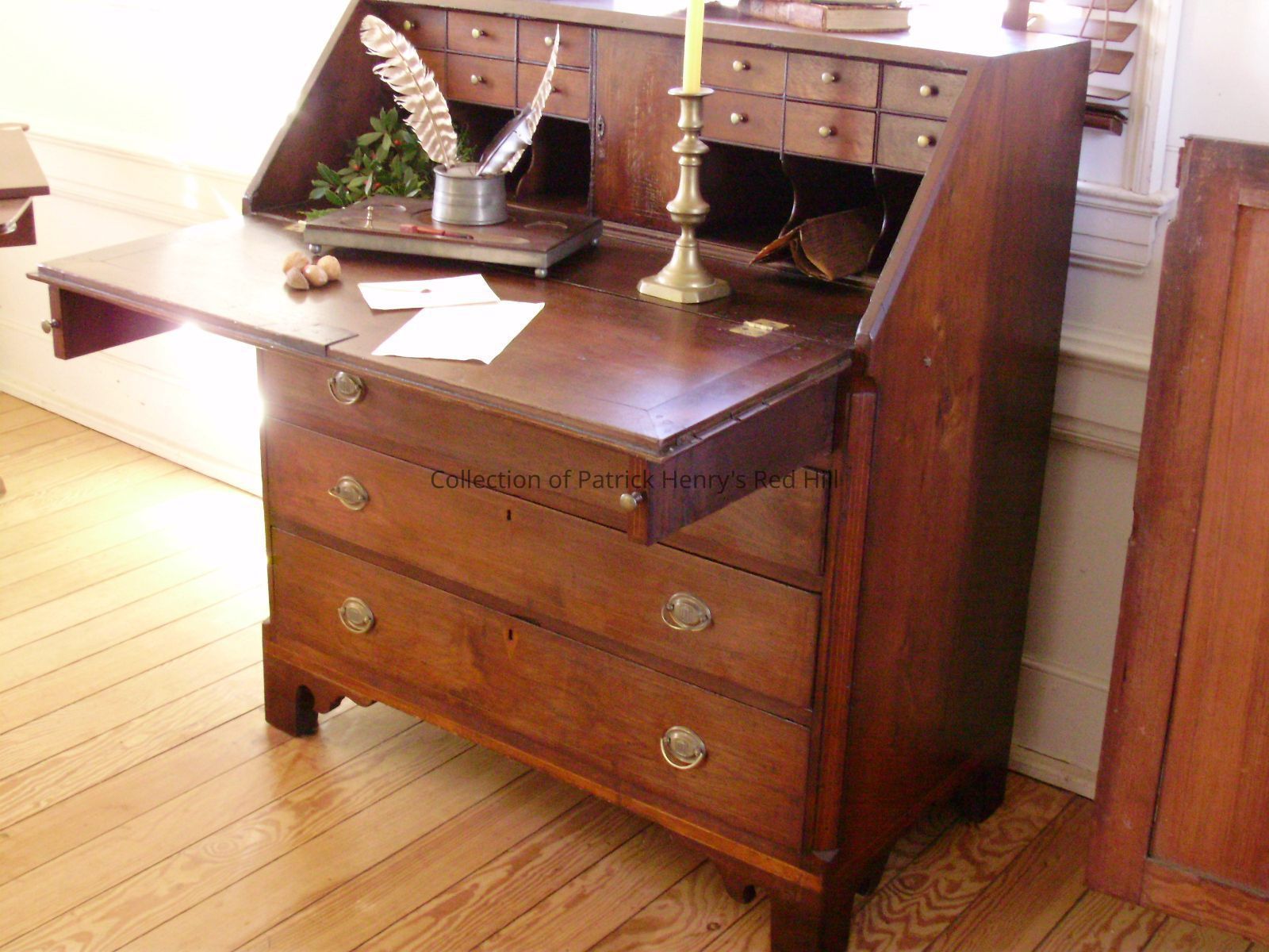 Ella Carter always claimed the desk came from Red Hill, but she had no documentation to support this. At her estate sale in 1968, Louise Terrell purchased the desk. She maintained the family legend that it came from Red Hill and asked that it be returned there after her death.
