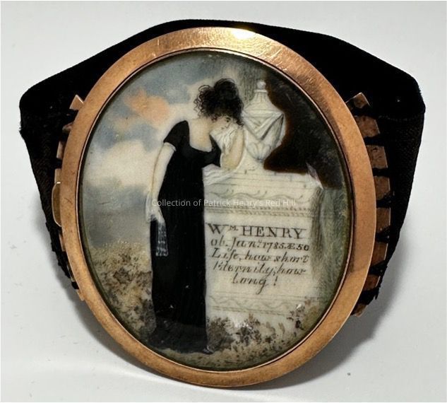 This mourning bracelet was commissioned from an unknown jewelry maker in memory of William Henry, brother of Patrick Henry, who died on January 2, 1785. It was worn by family members during the period of mourning.
