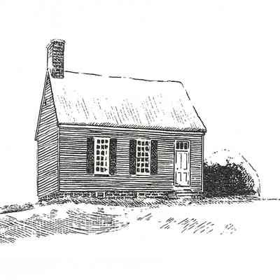 Southeast Elevations of Harrison's Cabin, Privy, Smokehouse, & Kitchen