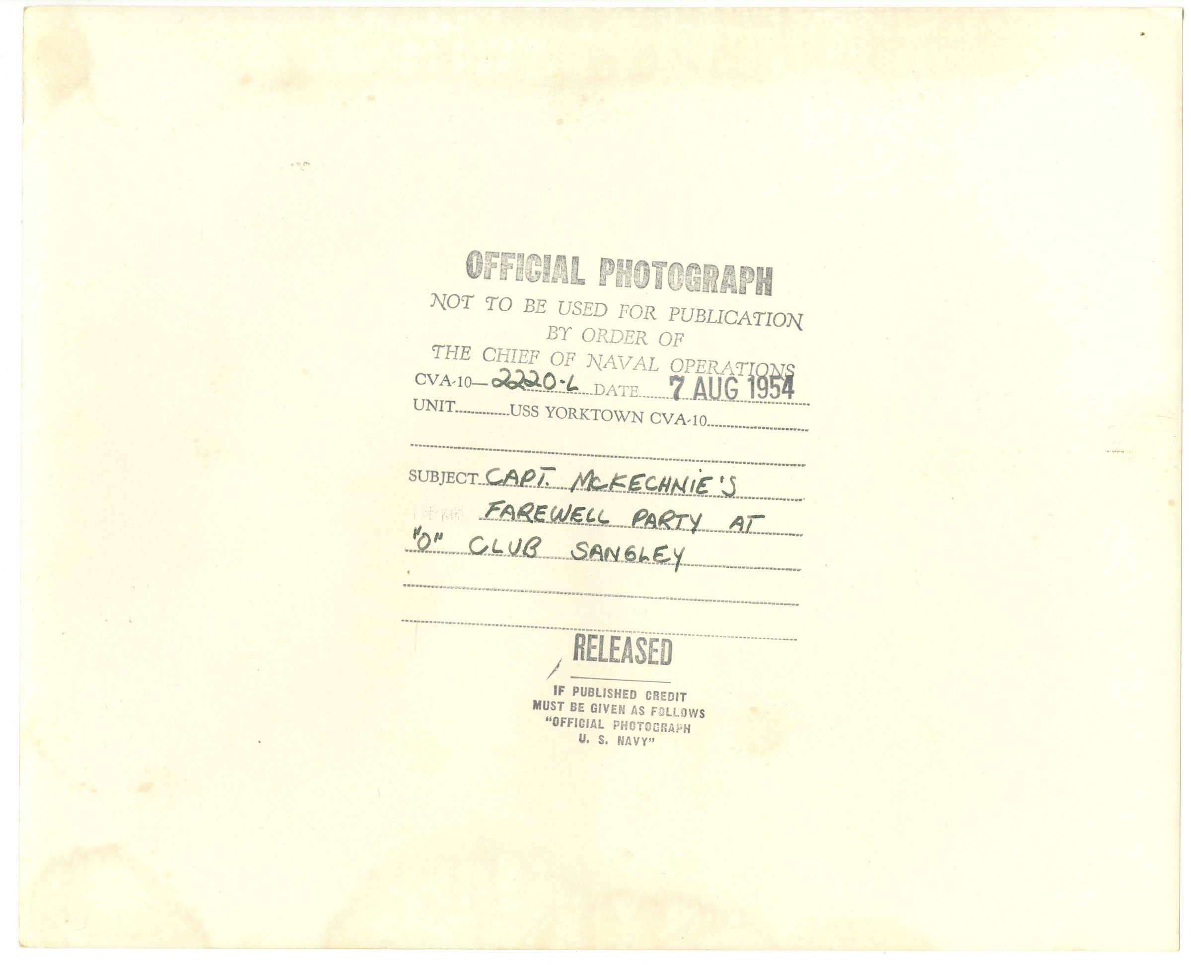 Capt. McKechnie's farewell party at "O" Club SangleyUpdate Date