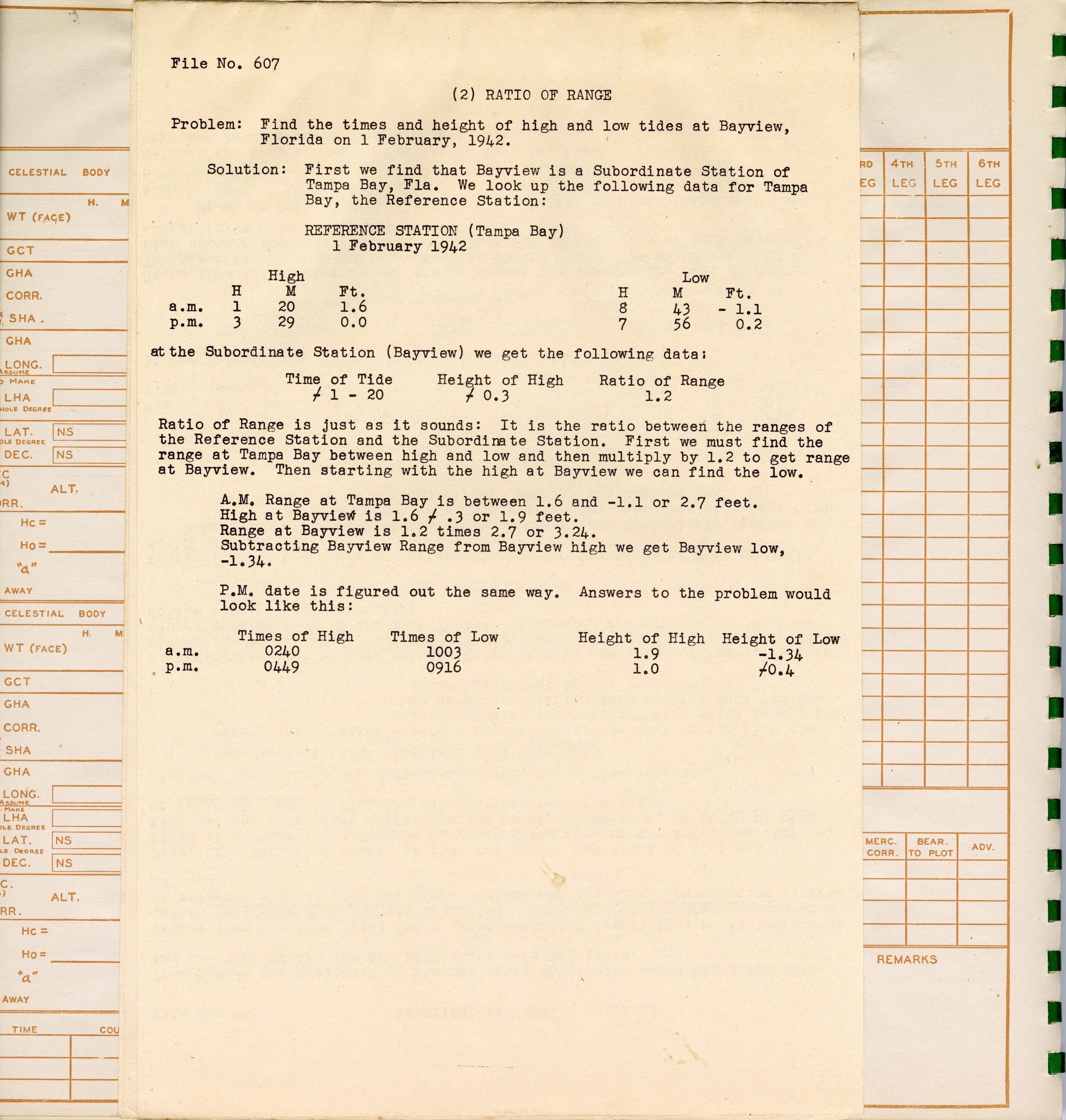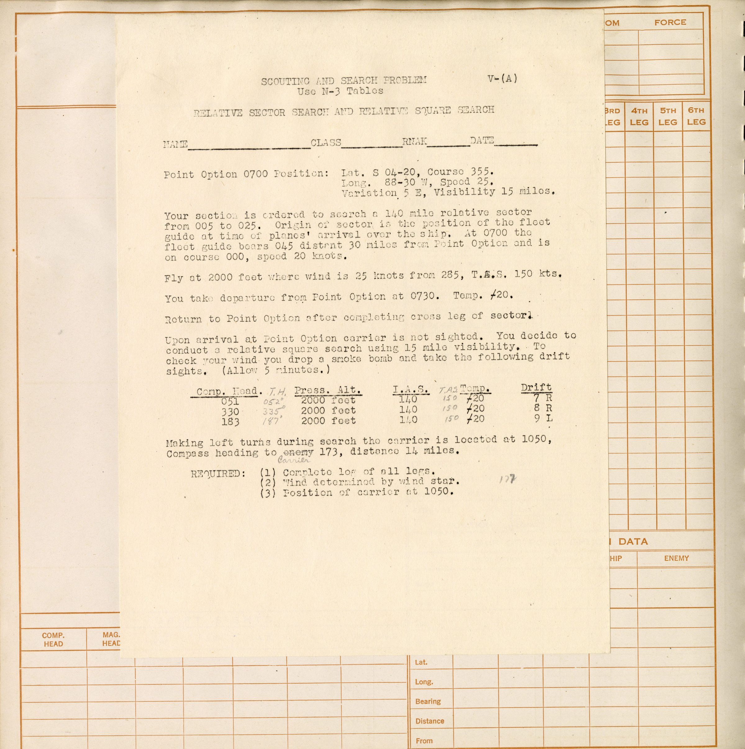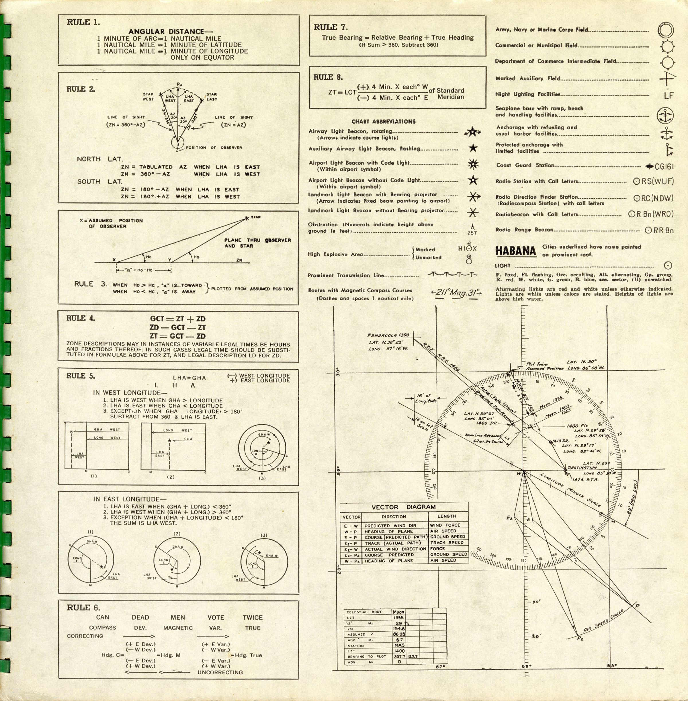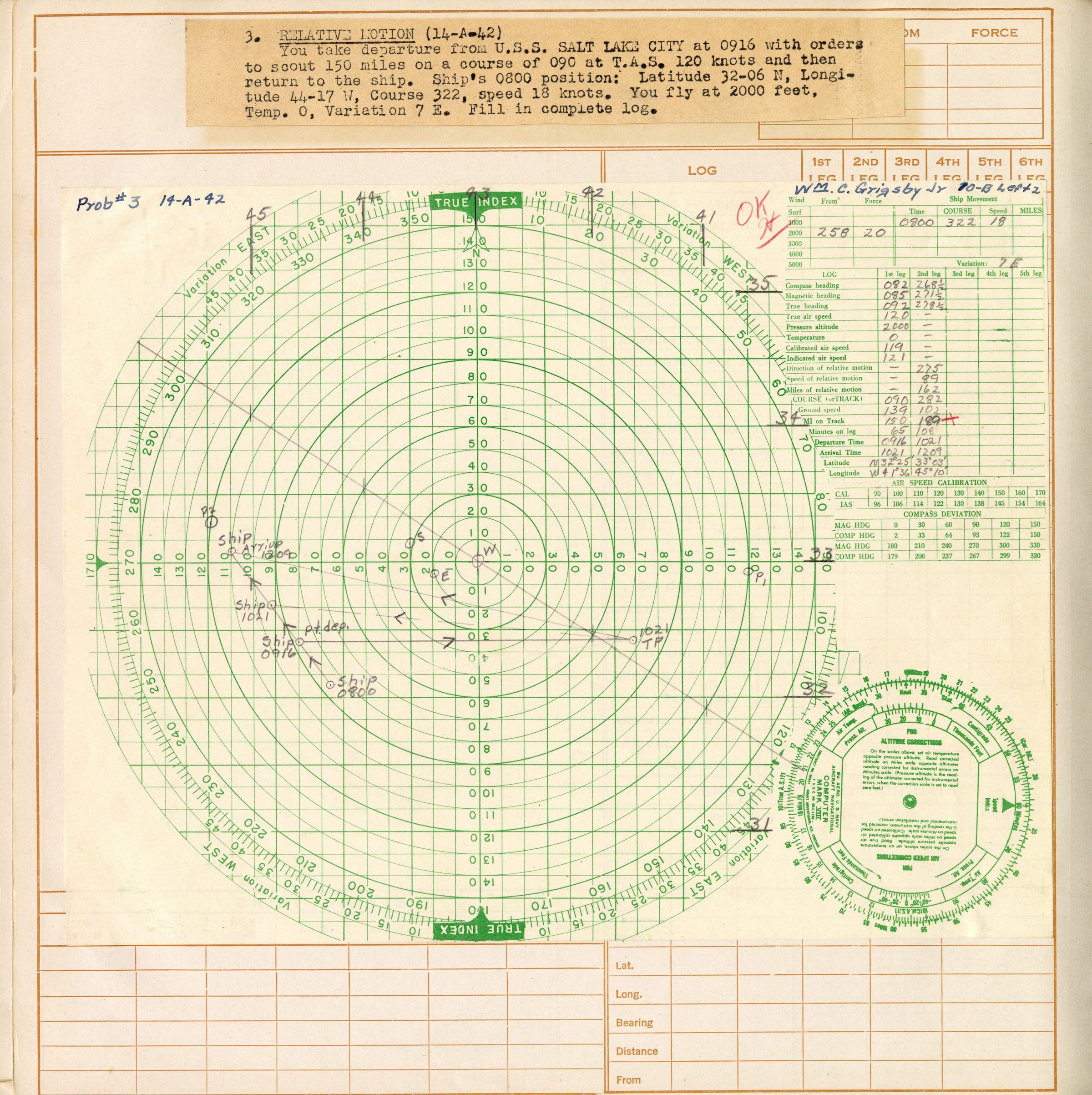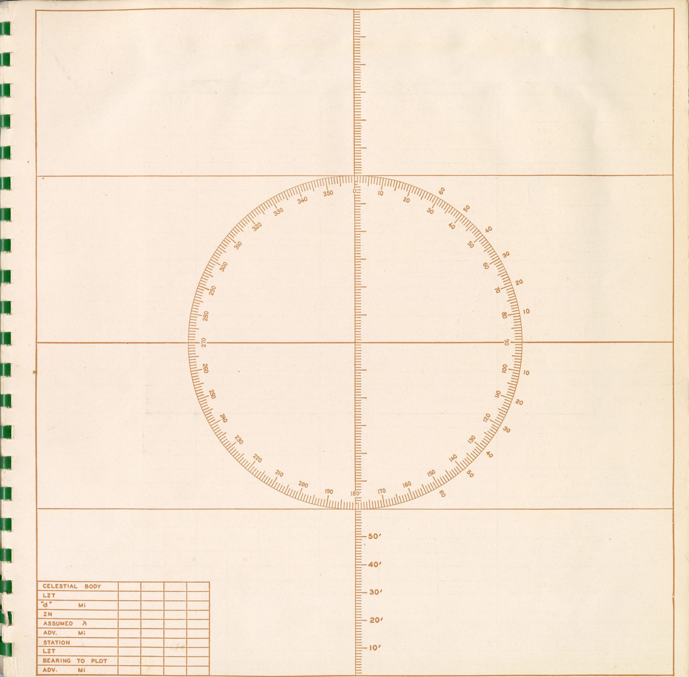 A celestial navigation practice notebook used by William Grigsby during his US Navy pilot training. Grigsby's handwritten notes and drawings can be seen throughout the notebook.Context