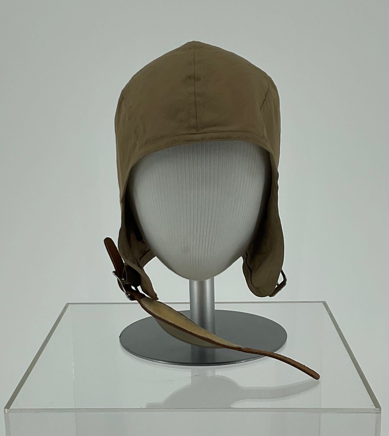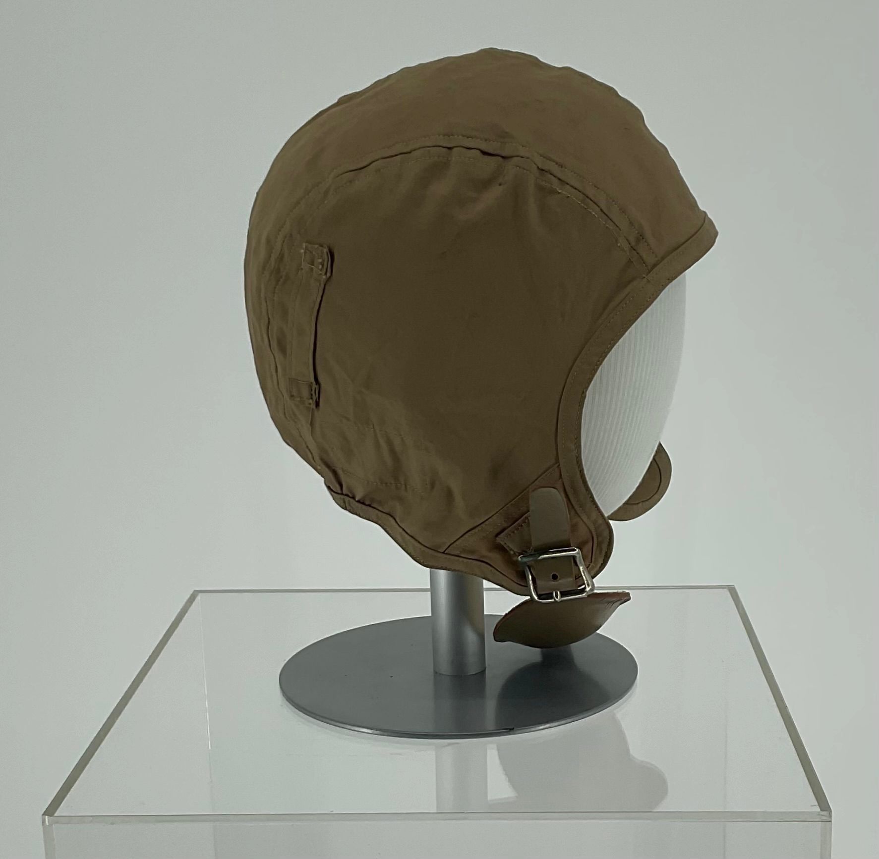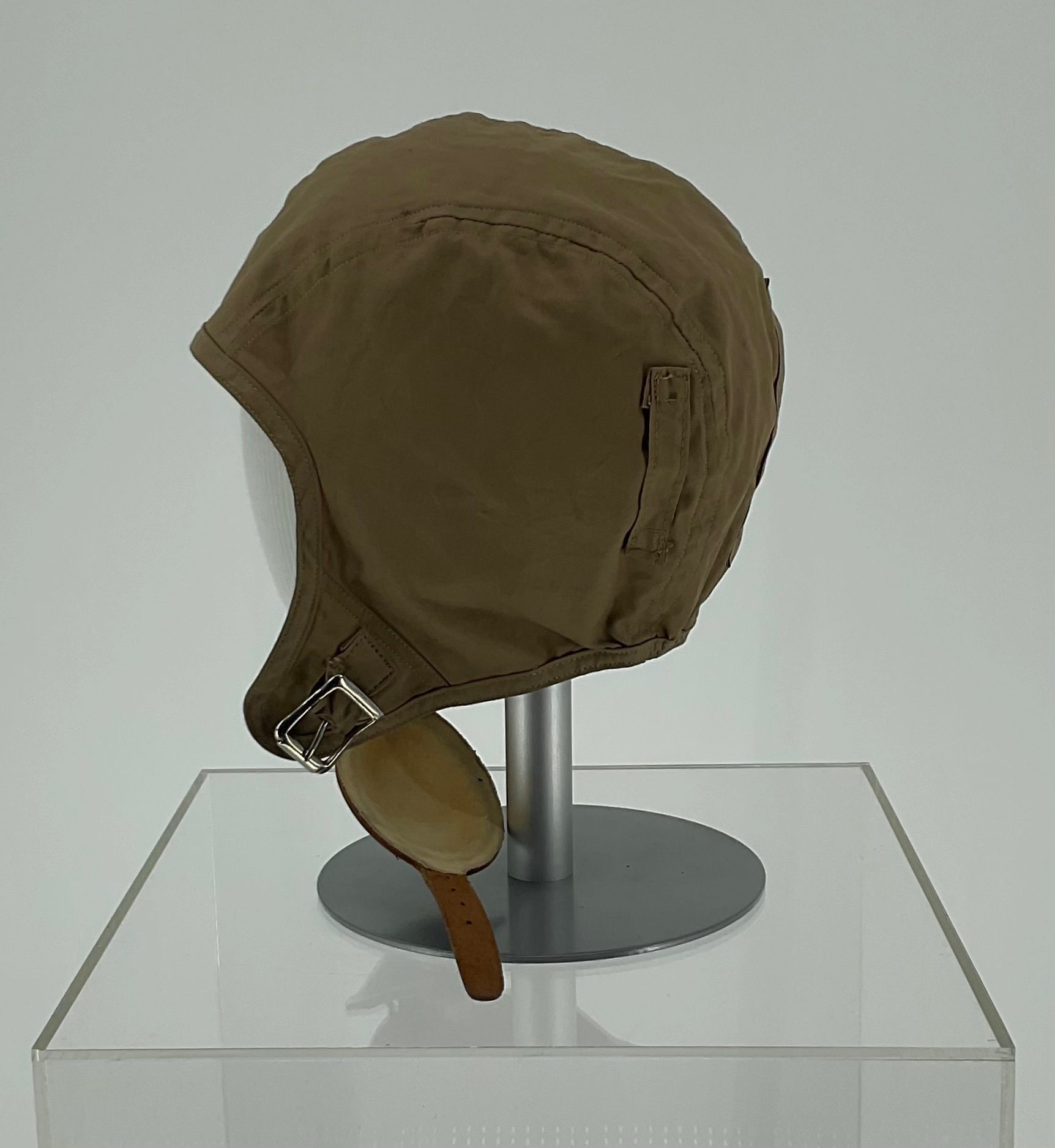 Made of a canvas-cotton blend, these aviator helmets were used to protect the flight crewman but was more comfortable than traditional leather helmets in warm weather.Context