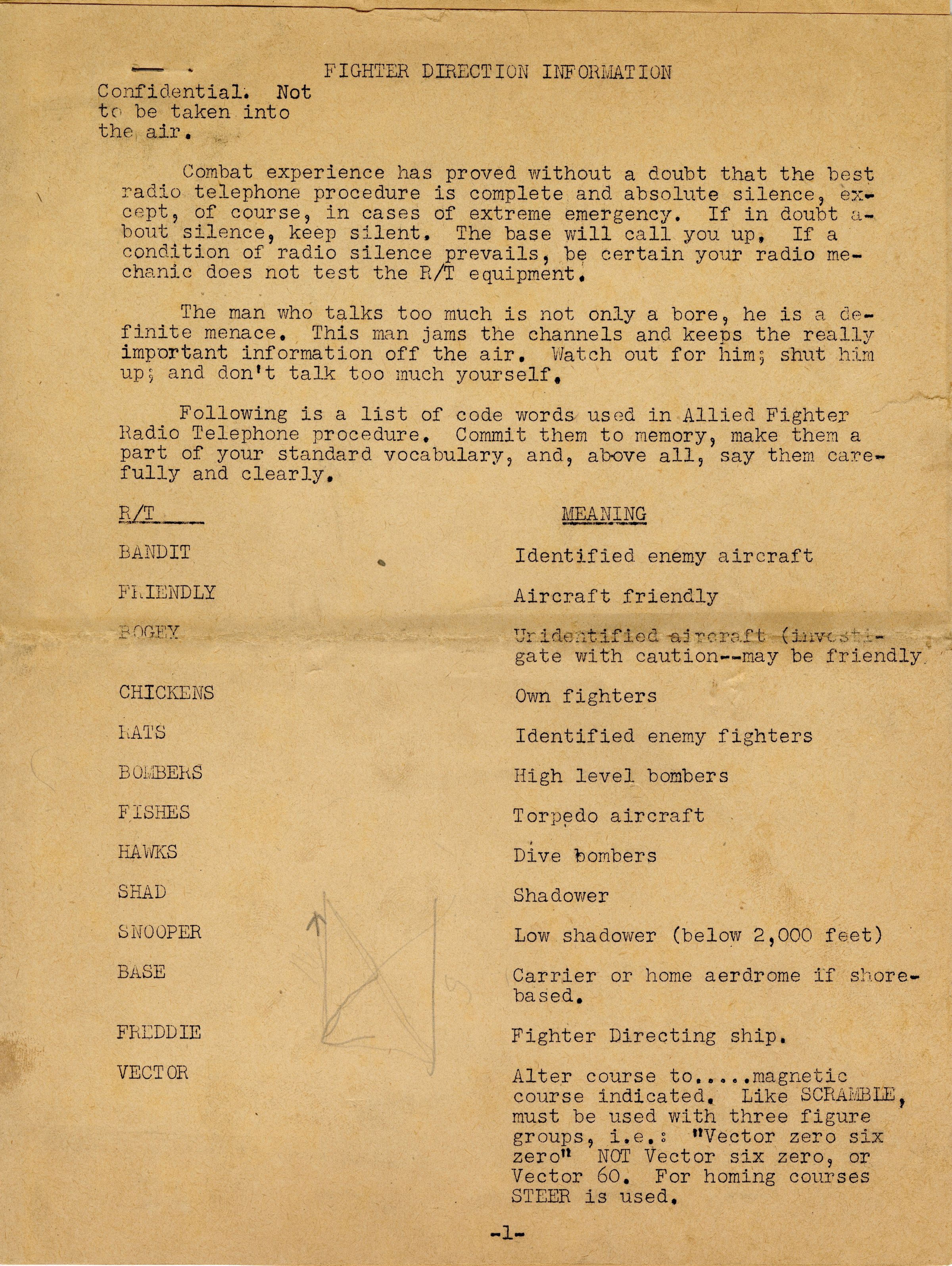 This document lays out quick advice and reminders for pilots. Topics include advice on radio usage and pilots' code words such as 'chickens' for US Navy fighters and 'rats' for identified enemy fighters.Context