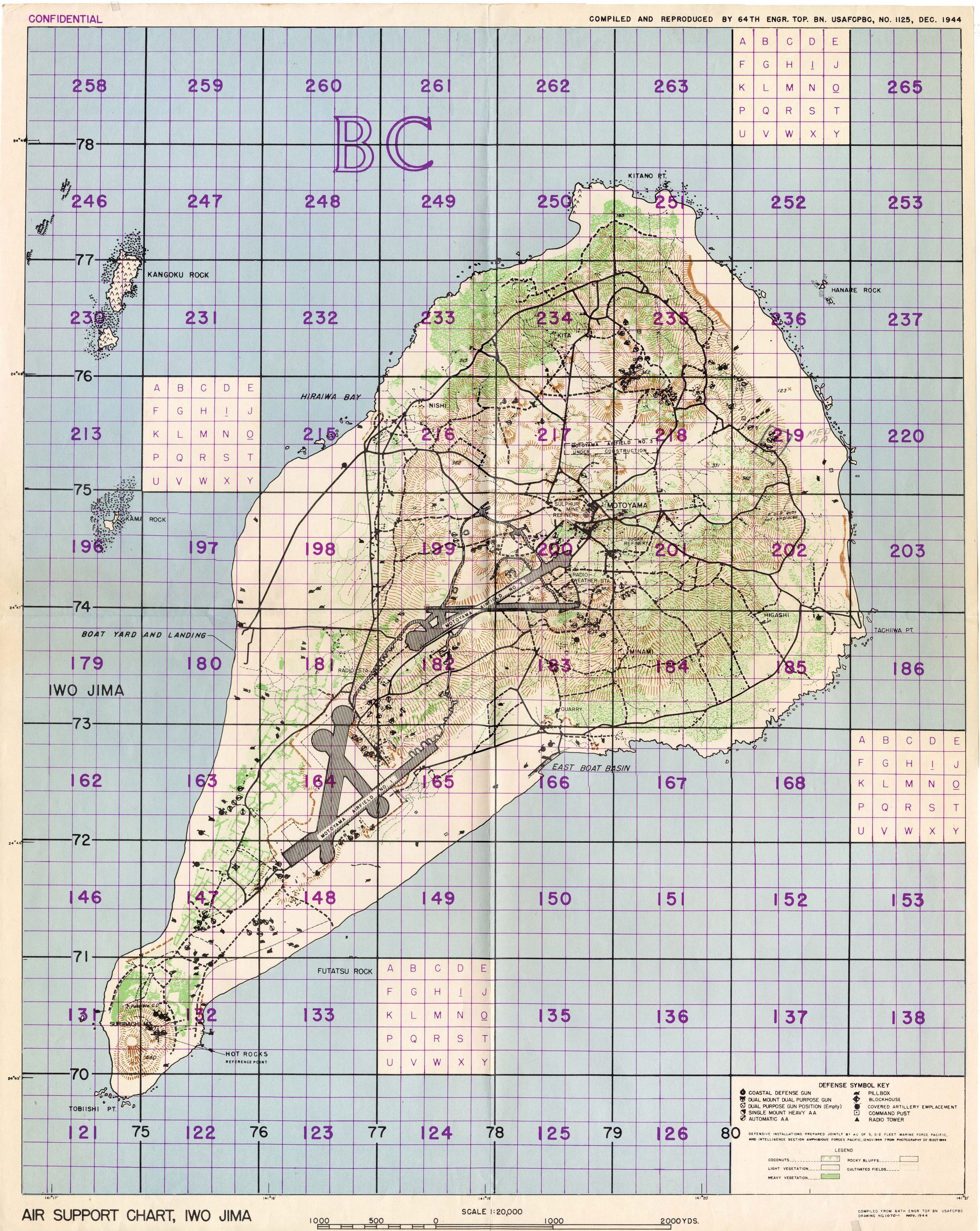 This map of Iwo Jima was used by US armed forces as they fought to take control of the island from Imperial Japan.Context