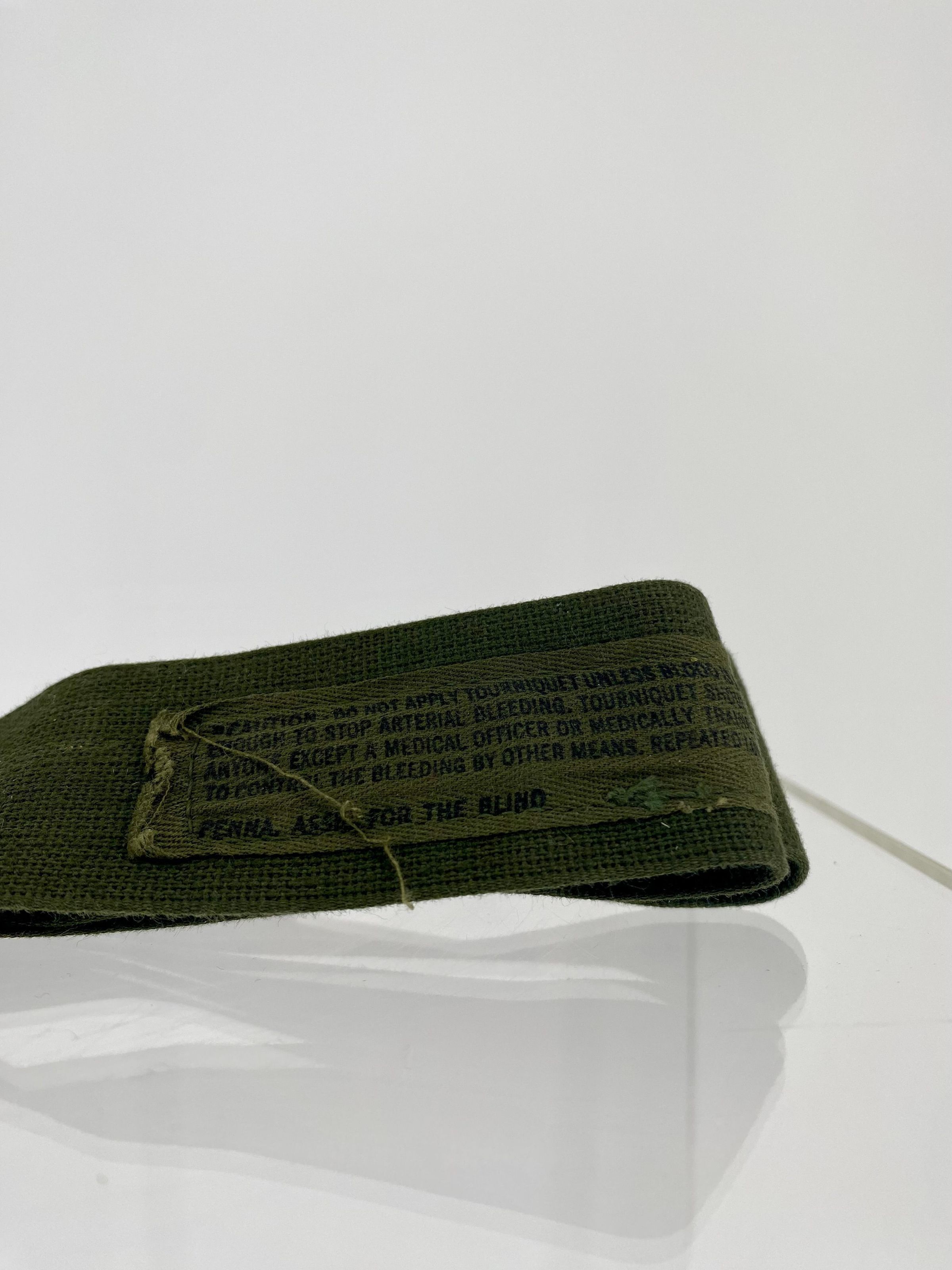 This medical device was used in the field to quickly stem blood flow leading to an injury on a limb. Cutting off blood flow above the injury would slow or stop severe bleeding.Context