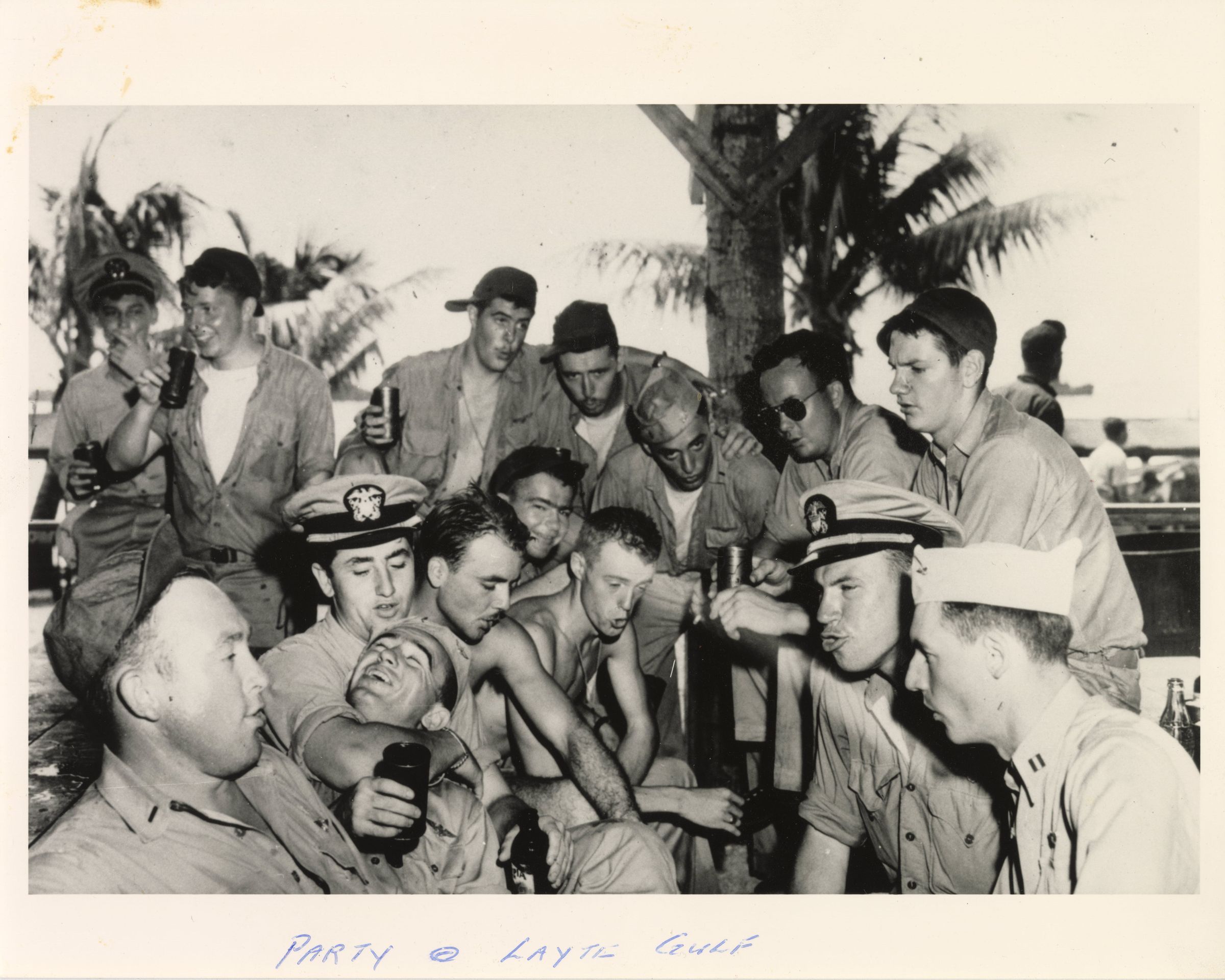 While enjoying liberty on the island of Leyte, a group of pilots from Air Group Twelve of the USS Randolph (CV-15) break out in song.Context