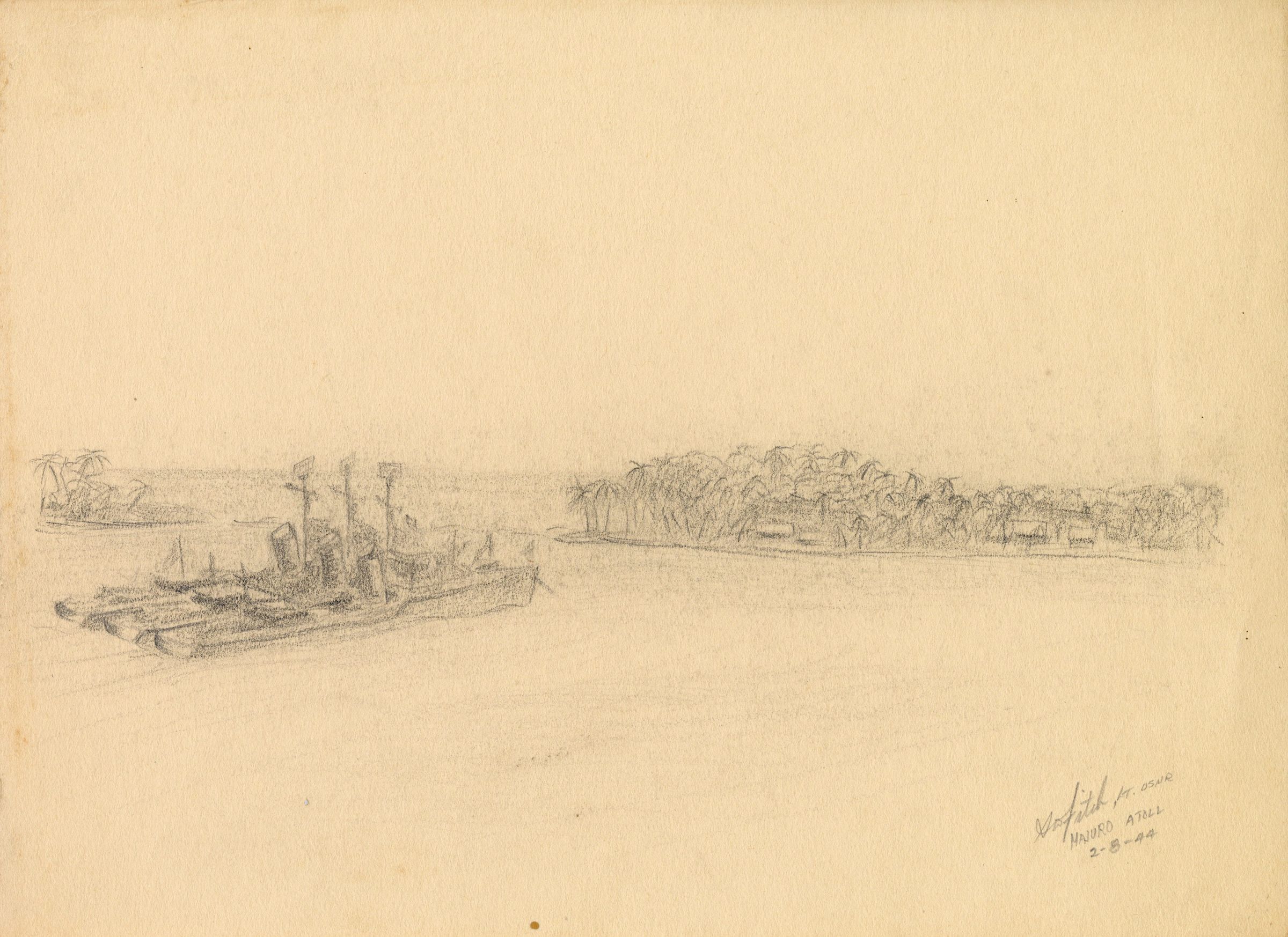 This series of sketches shows what life was like aboard the USS Yorktown (CV-10). These sketches capture the quiet day to day moments both aboard the ship and the moments of relaxation while on liberty.Context