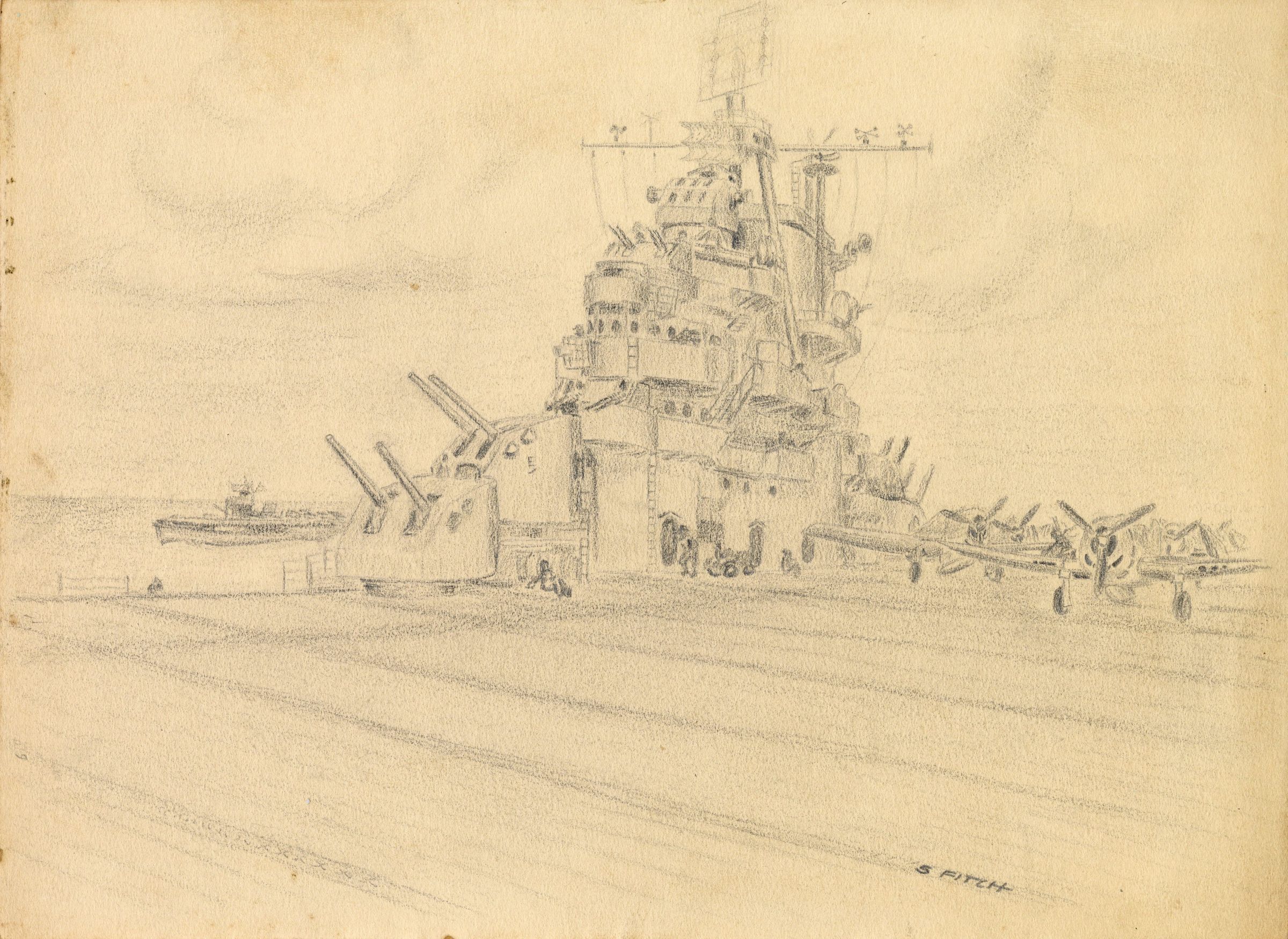 Stephen Fitch was a Lt. Commander in the Engineering Department on the USS Yorktown (CV-10). An artist at heart, Fitch would draw both small cartoons and comics as well as detailed schematics of engine compartments and staterooms. Fitch is also the artist behind the squadron emblems on the flight deck killboards.Collection