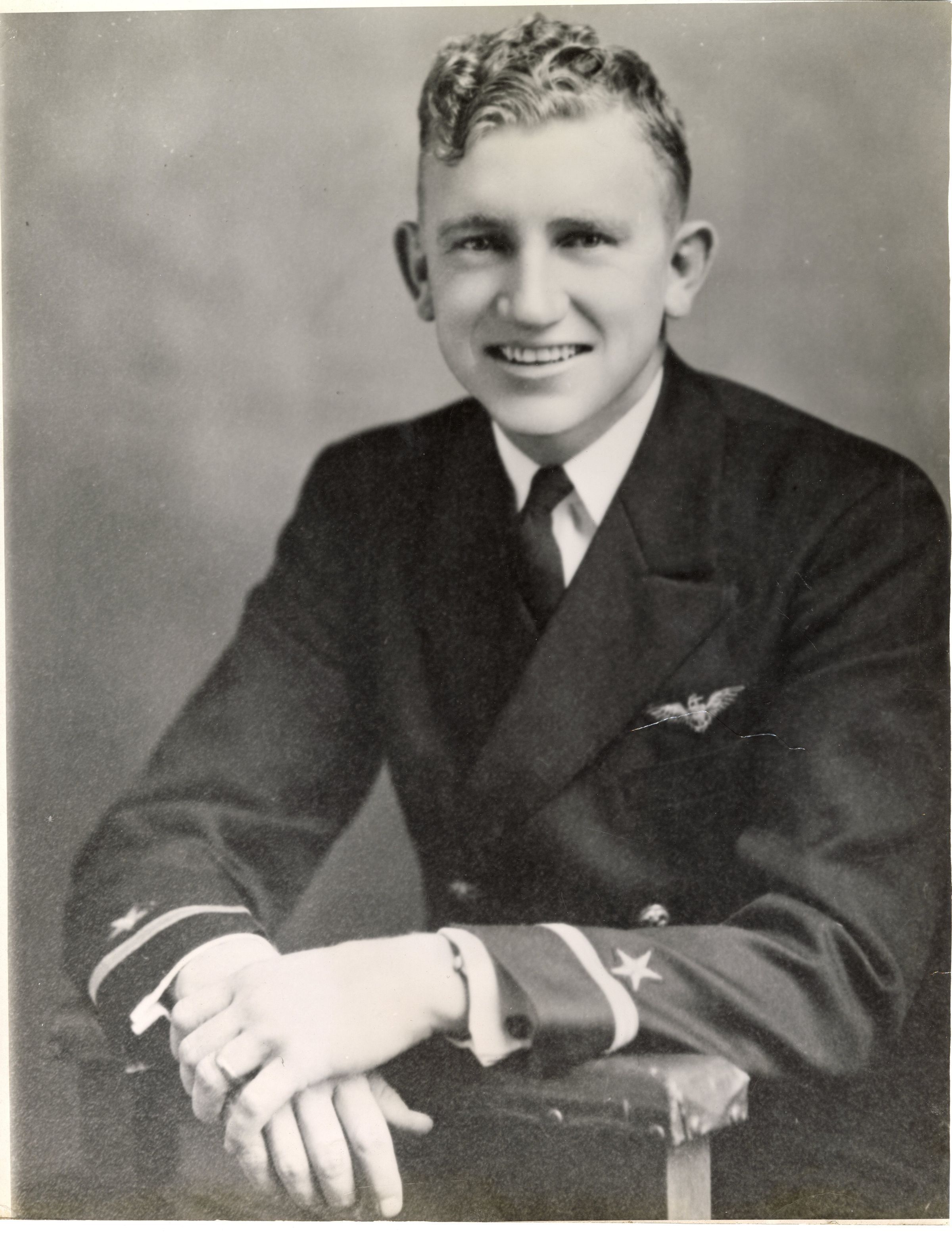 This picture shows a smiling William Grigsby wearing his pilot wings. The single stripe and star on each sleeves show that Grigsby is an Ensign at the time this photo was taken.Context