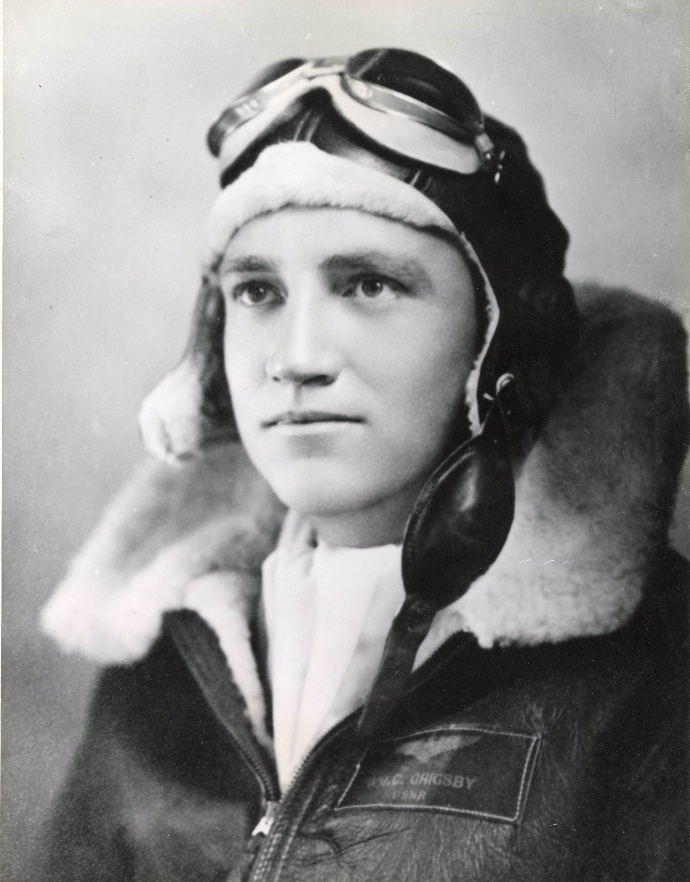 This photograph shows William Grigsby wearing his winter flight gear, including the leather, fur-lined gear designed to conserve warmth at cold temperatures and high altitudes.Context