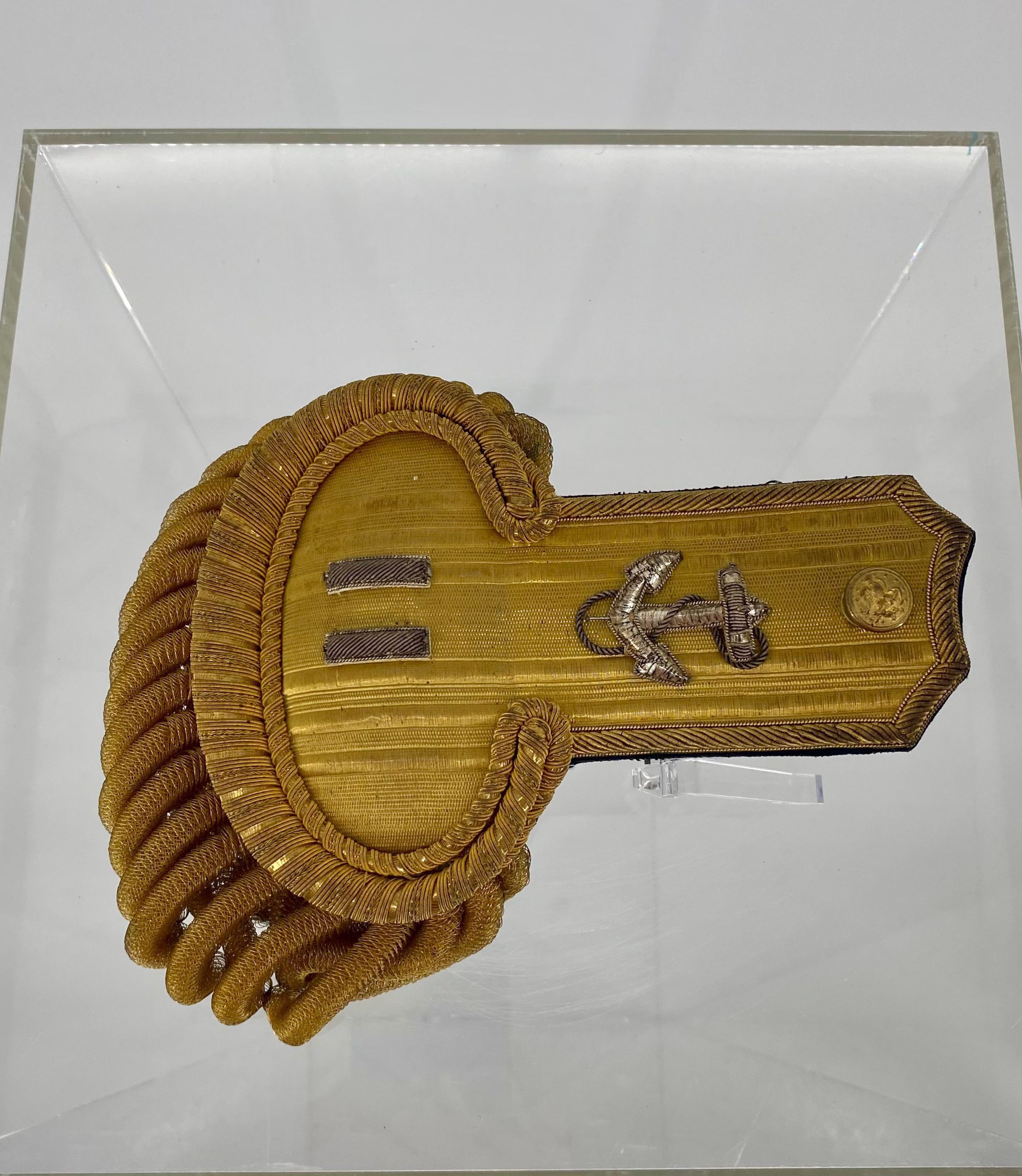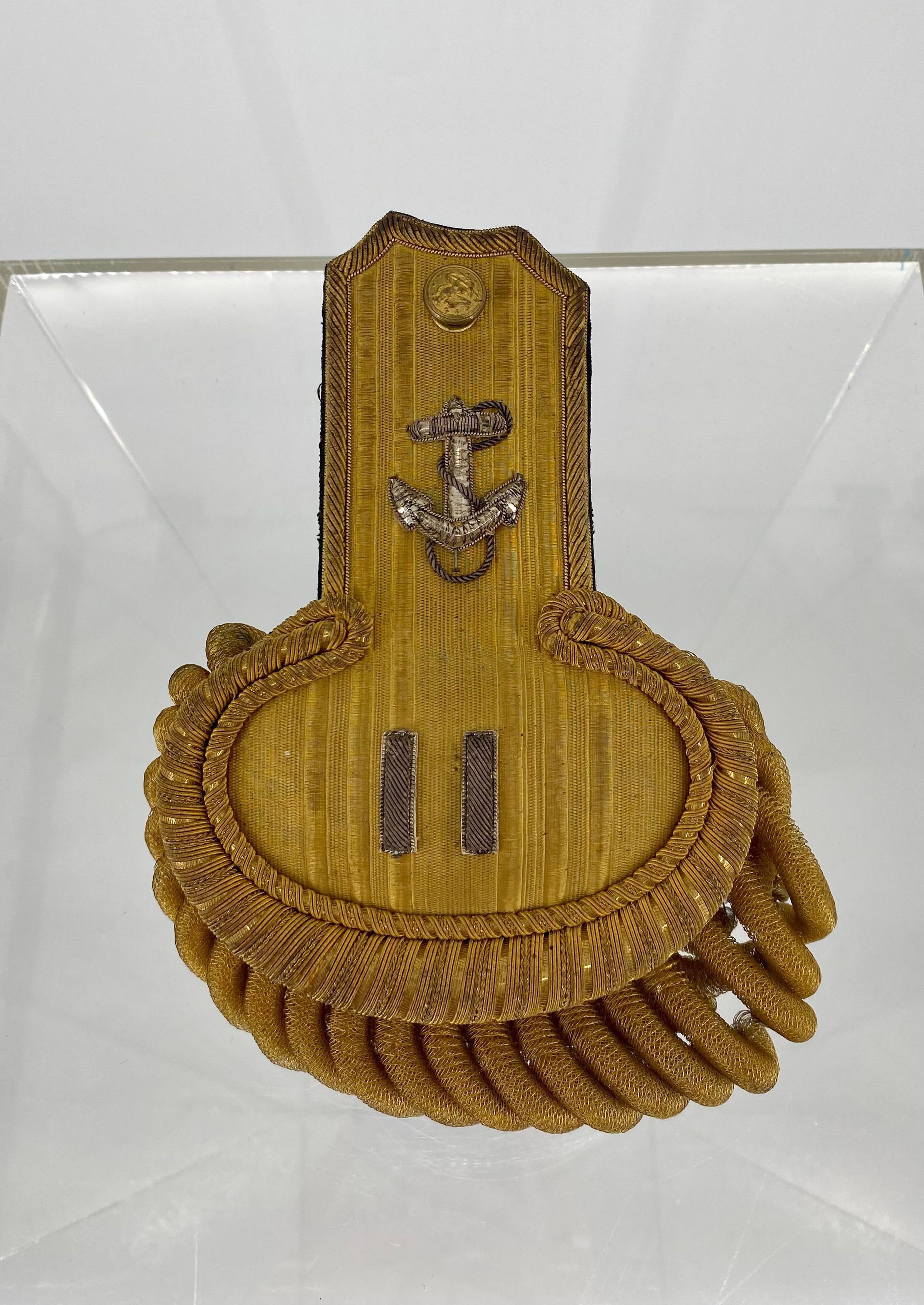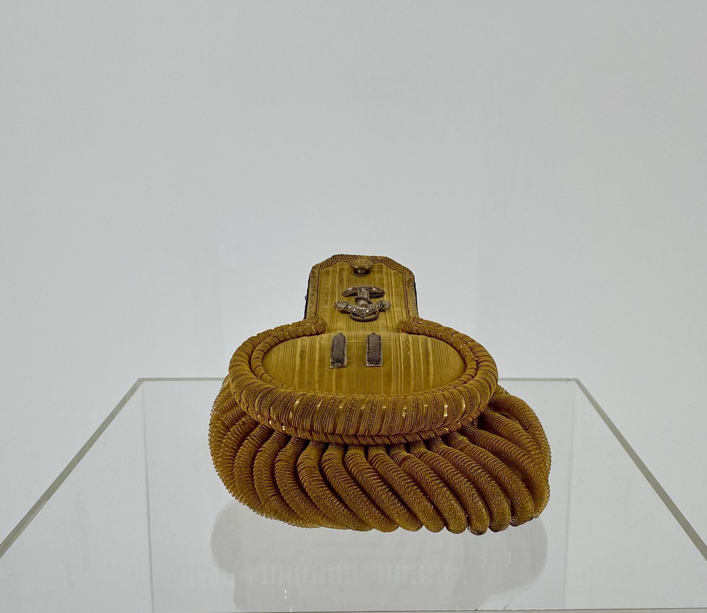 A gold and silver bullion right epaulette for a US Navy lieutenant's formal dress uniform.Use