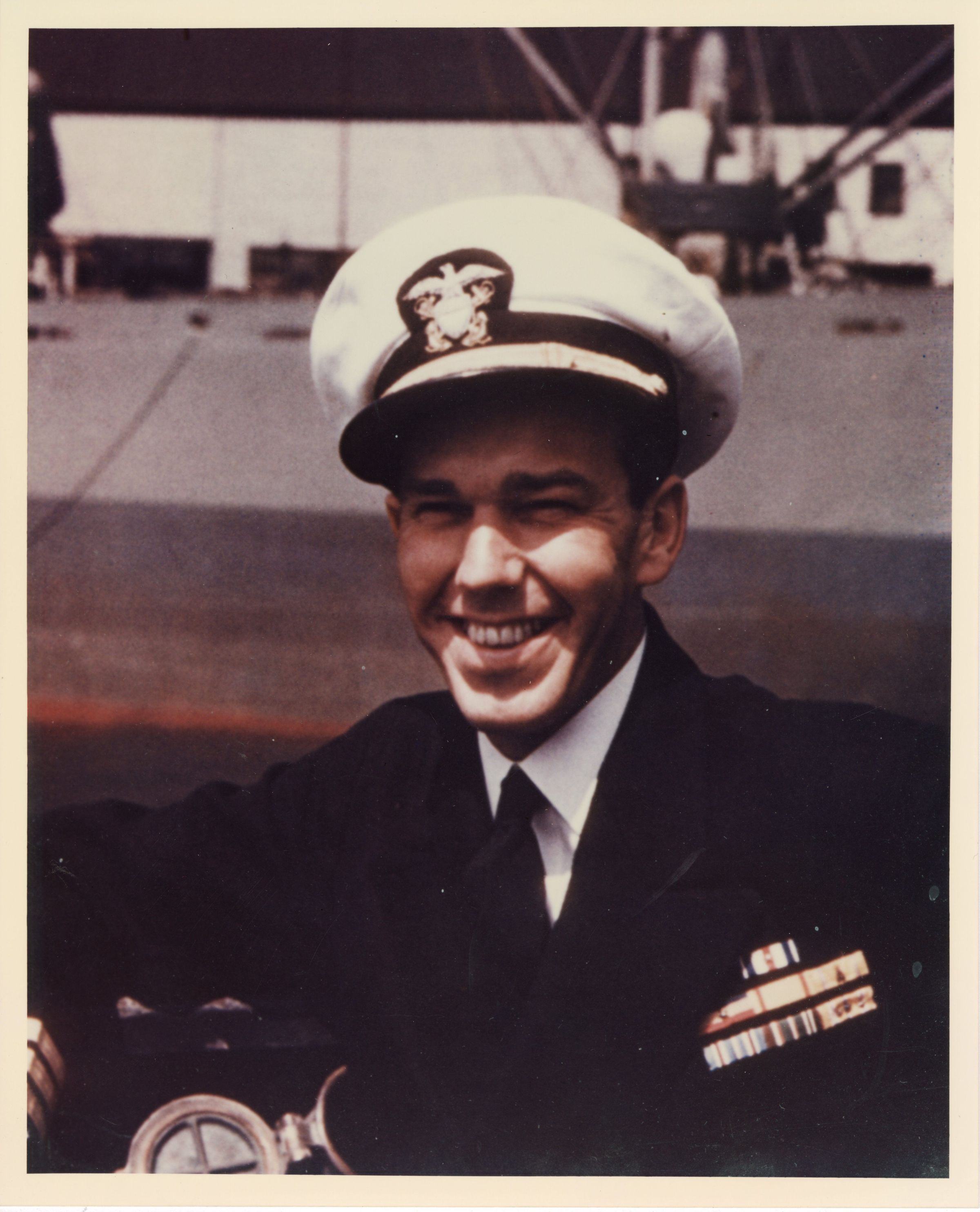 A color photograph of Captain Becton smiling while in his dress uniform.Context