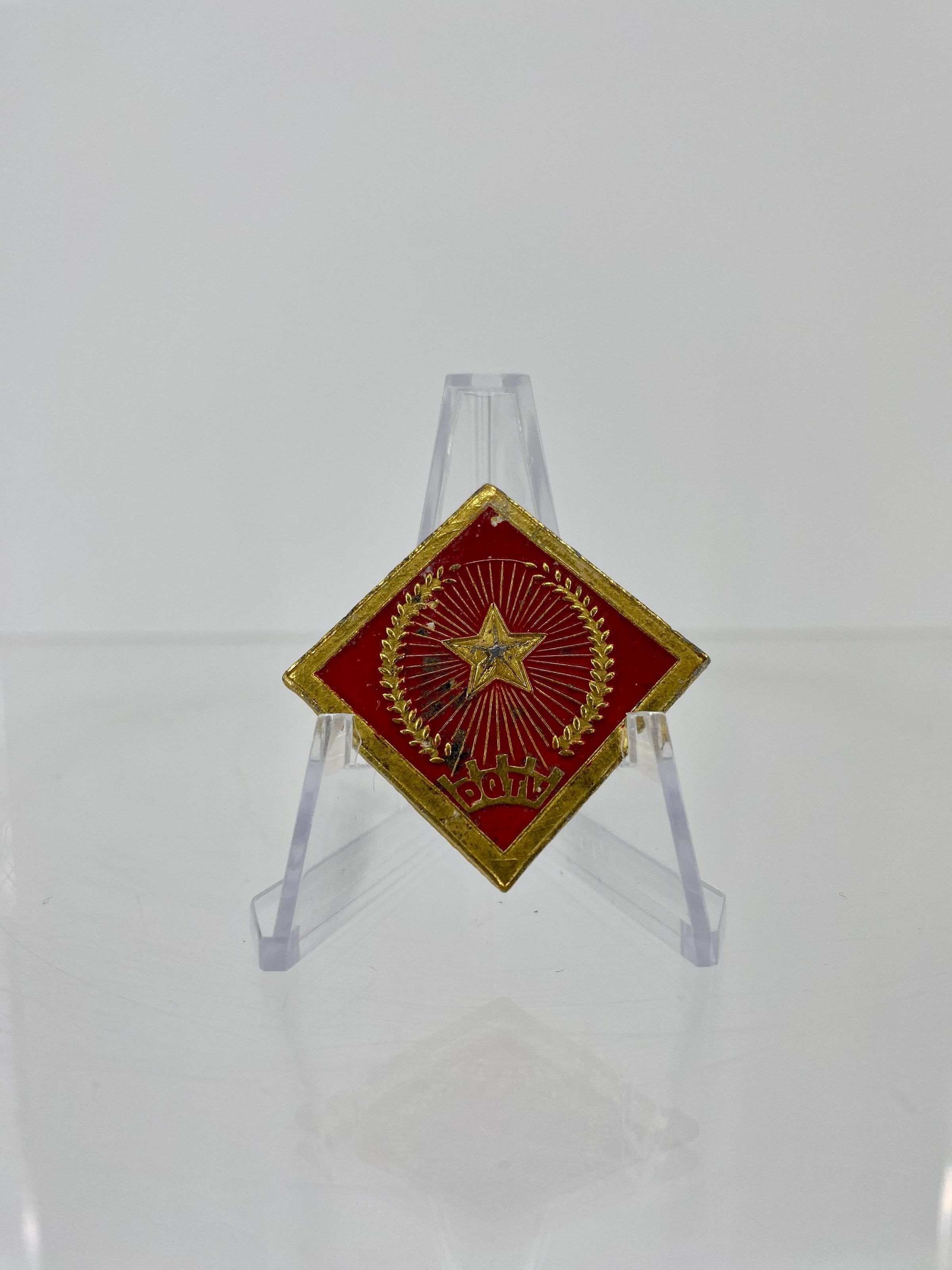 This pin was worn on the pith helmets of the Vietnam Self-Defense Militia.