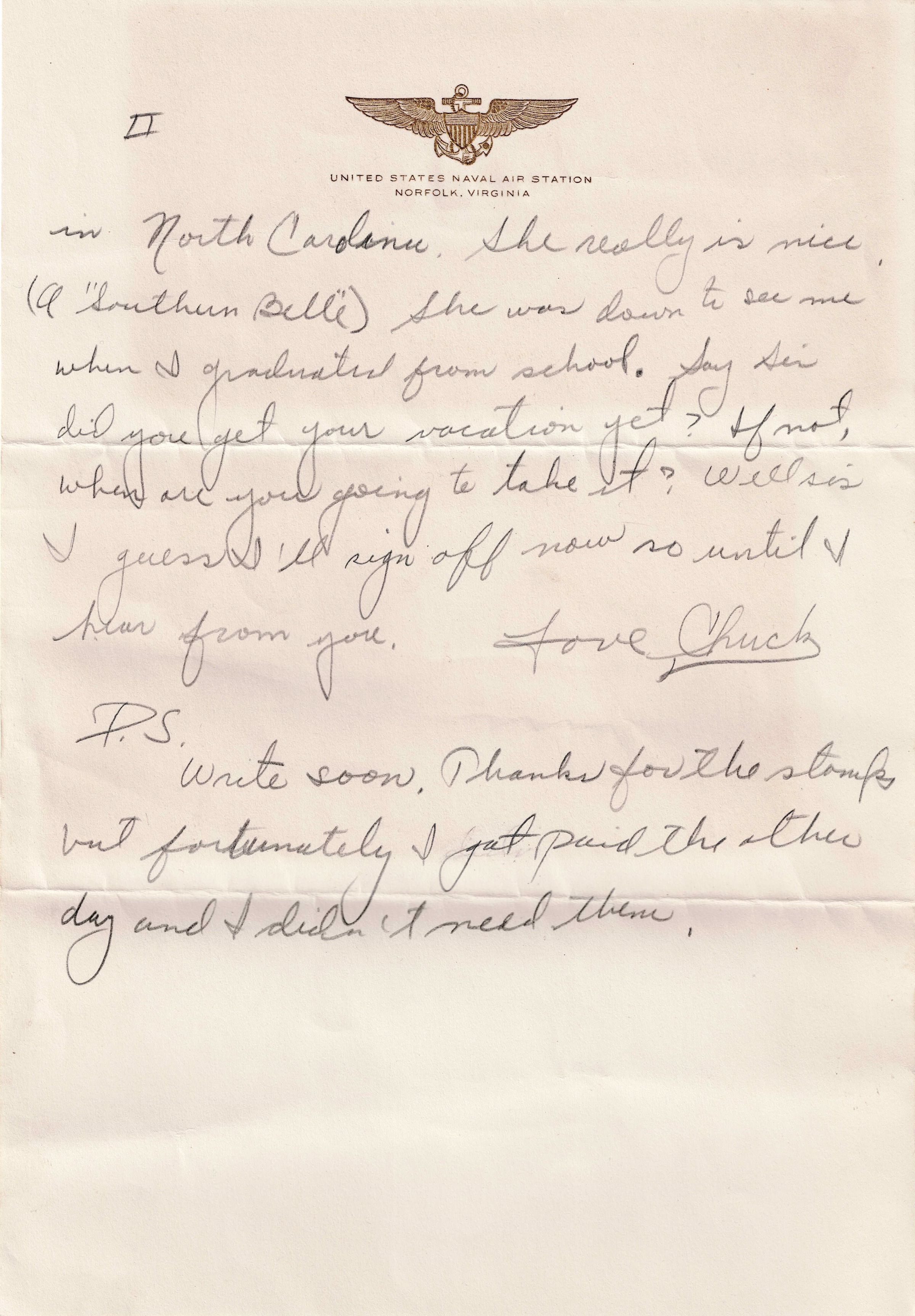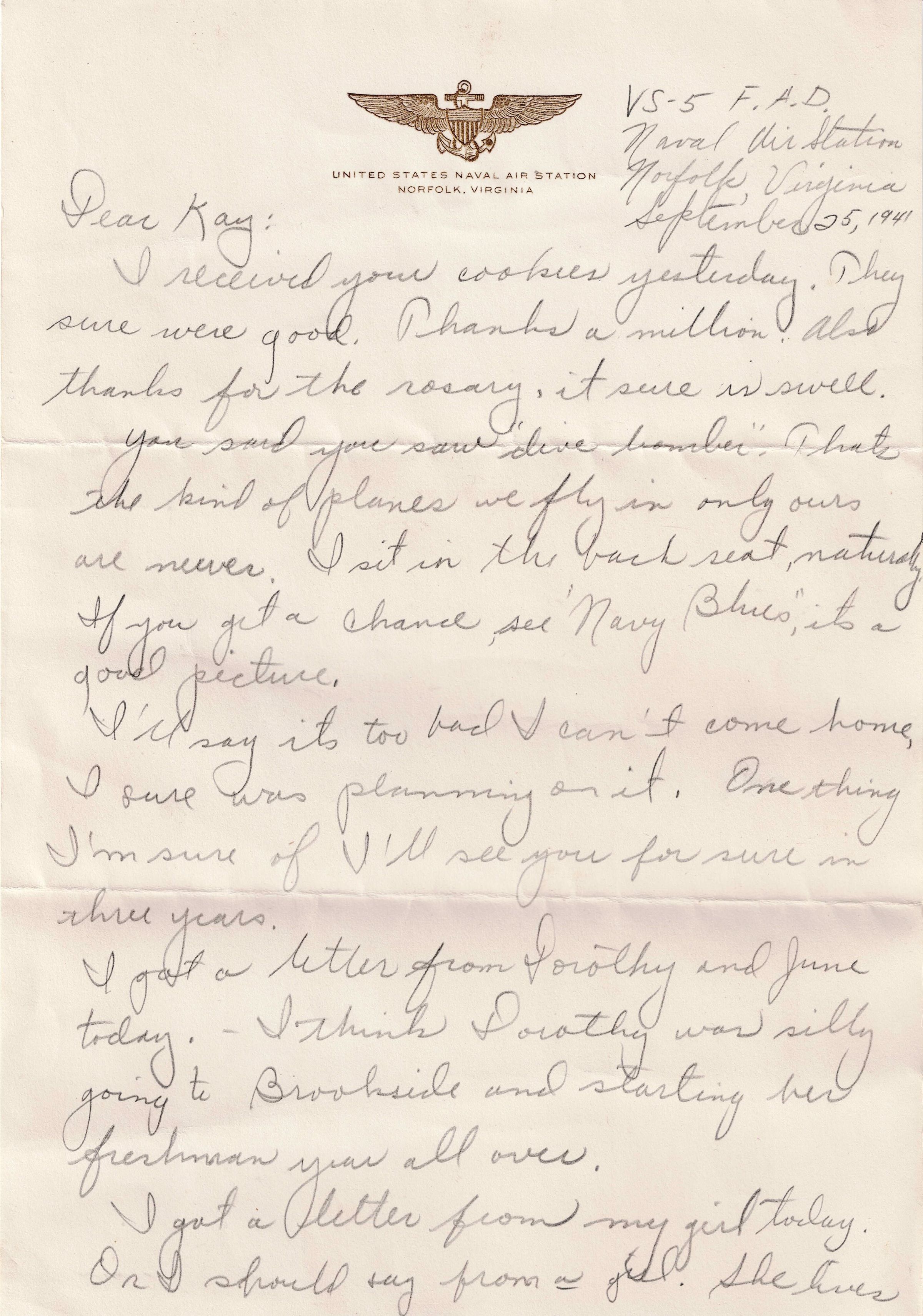 A letter from Charles "Chuck" Bonness to his sister, Catherine Bonness, September 25, 1941.Context