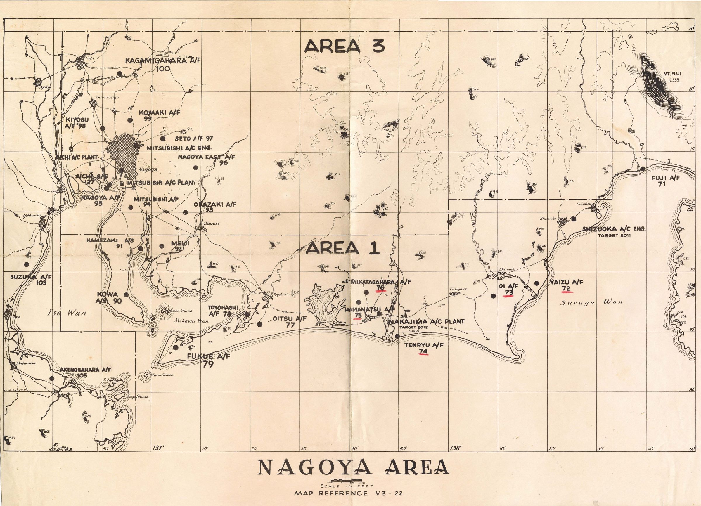 These two military maps show the area around Nagoya, Japan. These maps also highlight industrial factories and plants as potential targets for bombing.Context