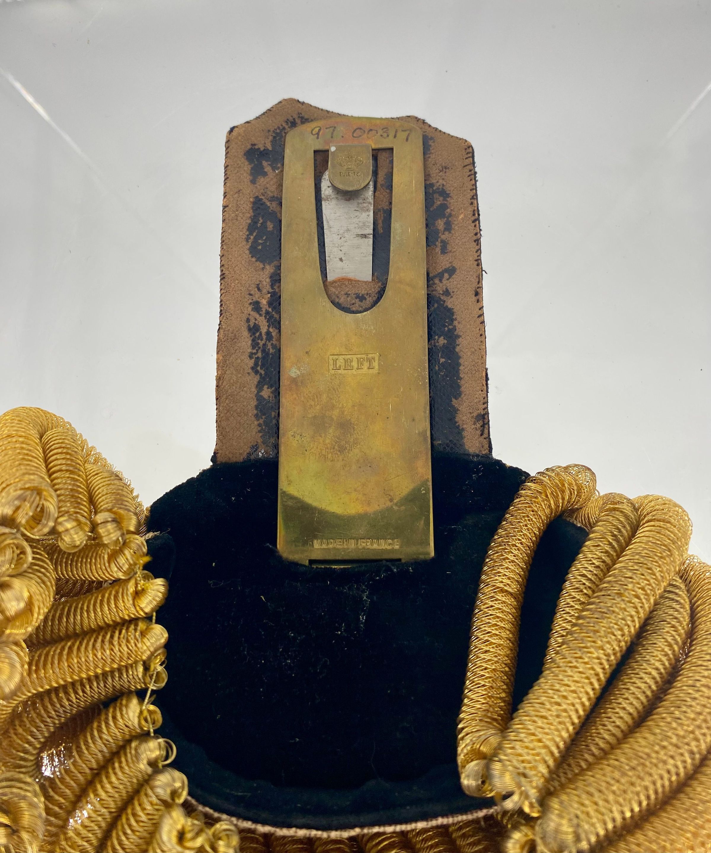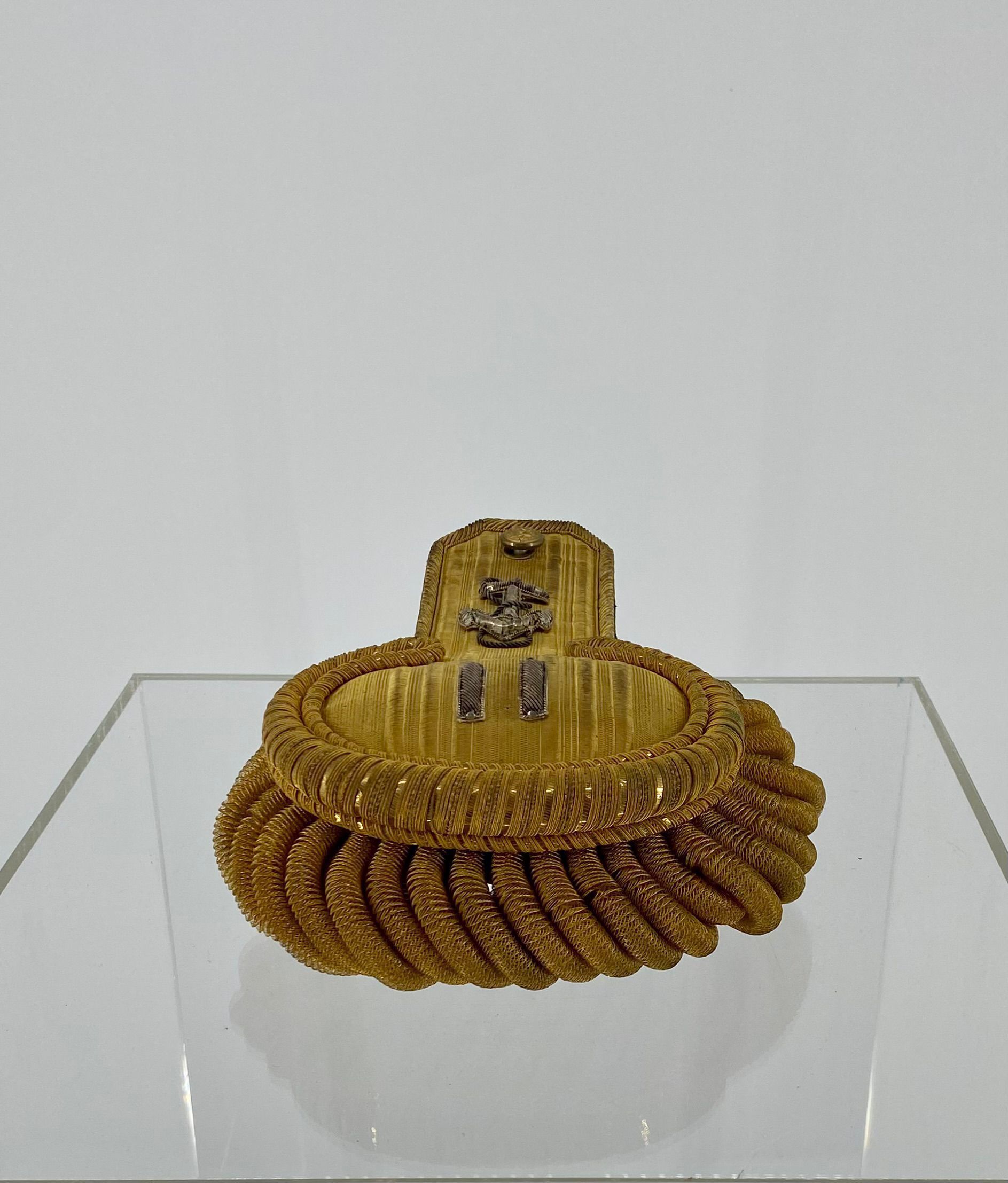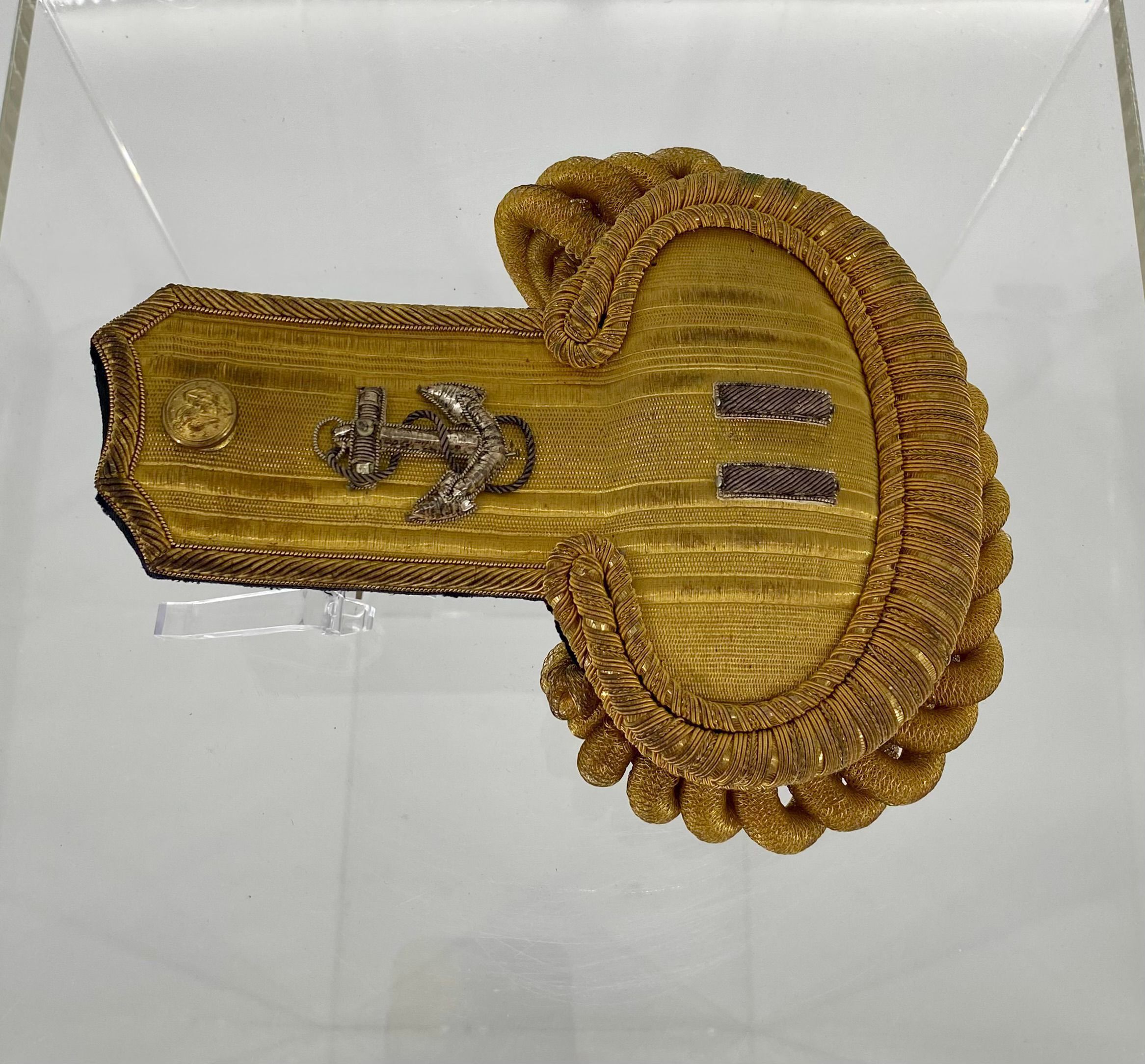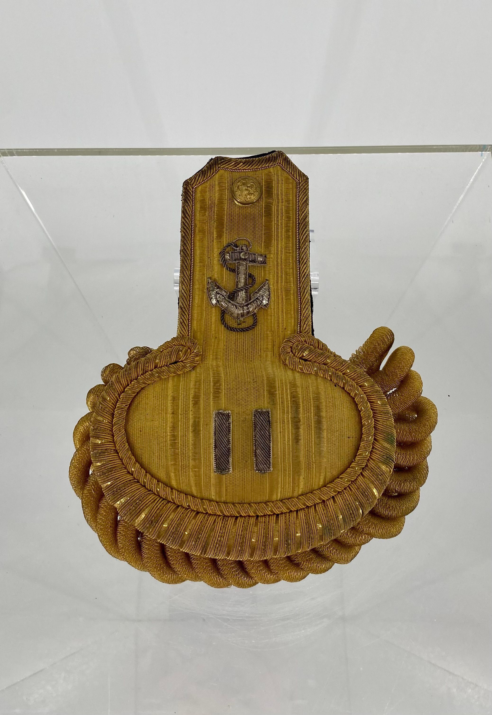 A gold and silver bullion left epaulette for a US Navy lieutenant's formal dress uniform.Use