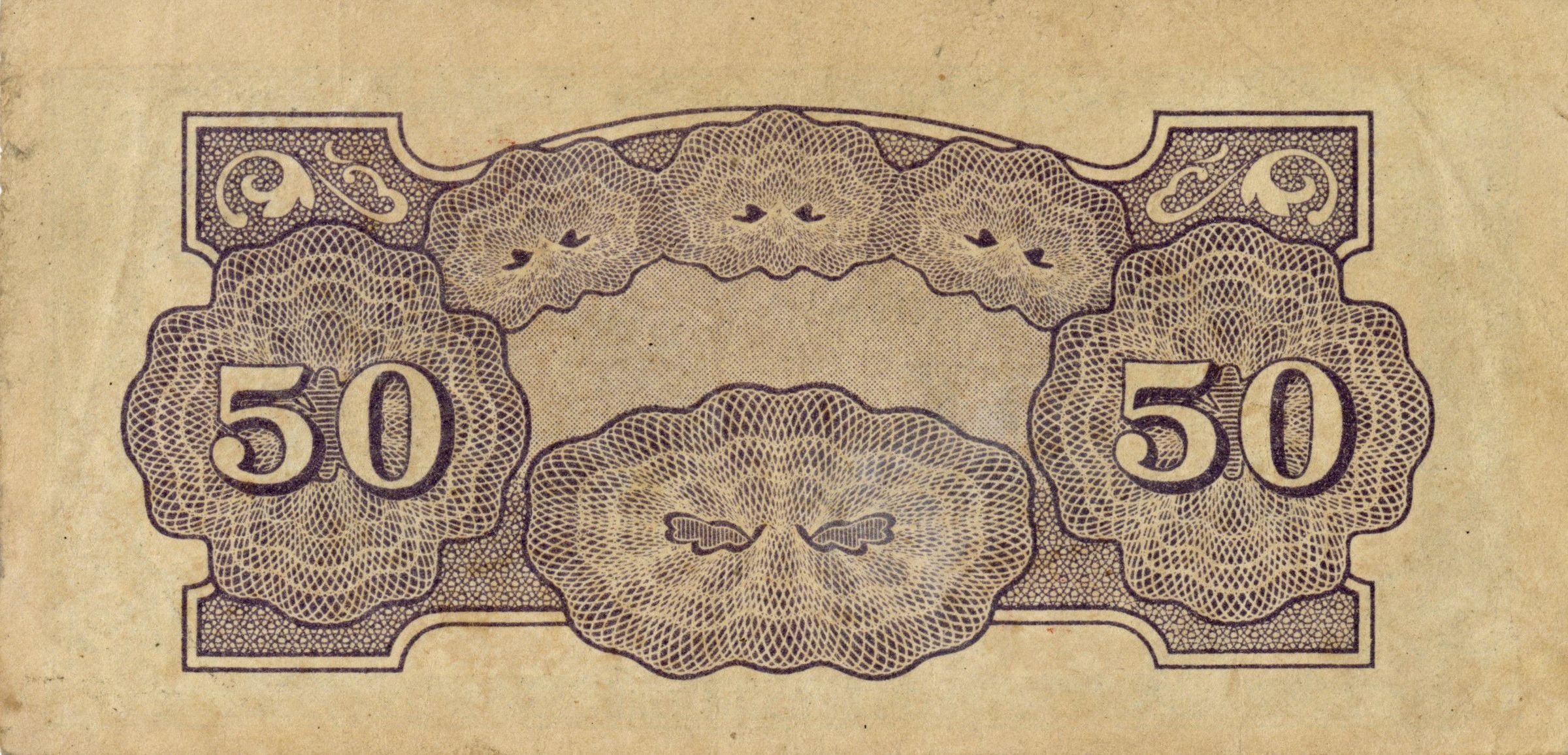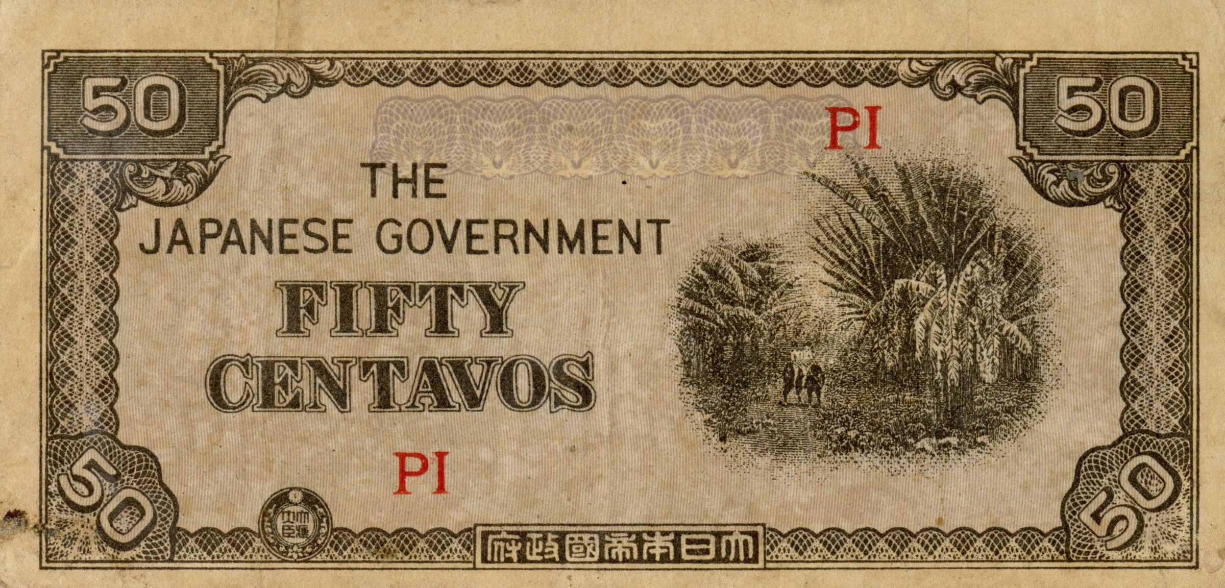 Fifty Centavos note, issued by the Japanese Government and later collected by Wilbert Gauding. This piece of currency was used in the Philippines as part of Japan's occupation during World War Two.Use