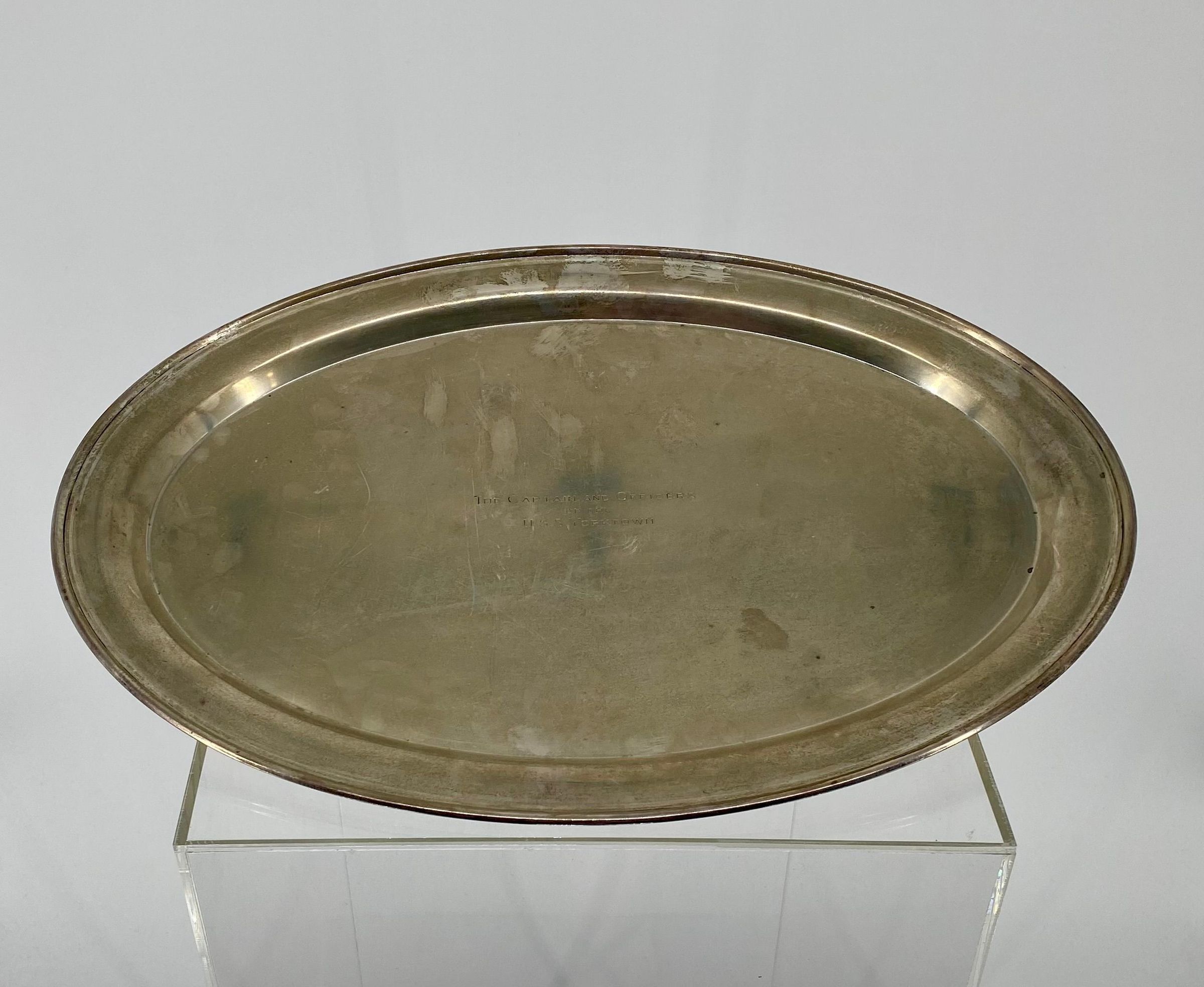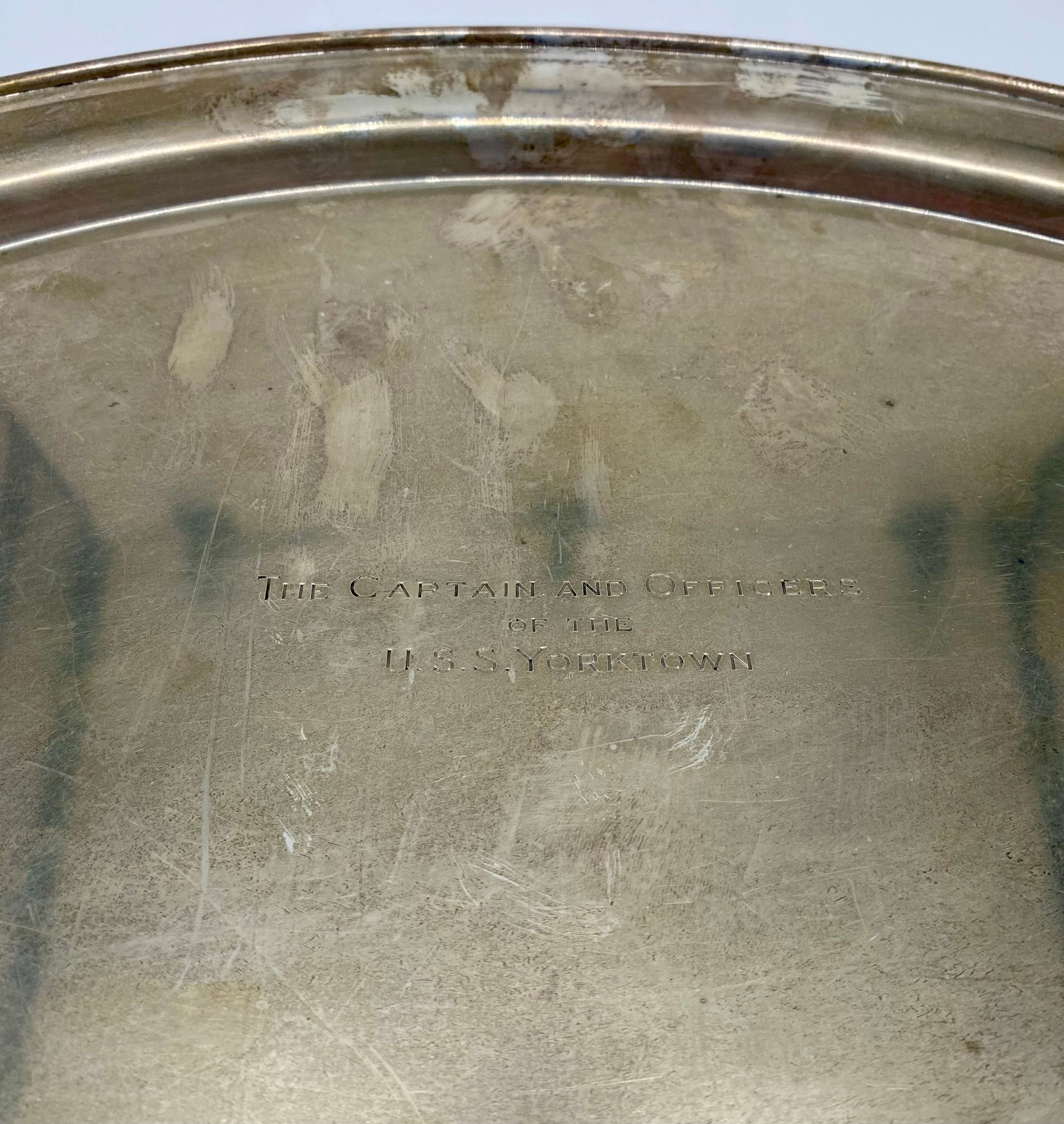 Silver wedding platter given to Rear Admiral Clarence Caffrie Ray on his second marriage by the Officers and Men of the USS Yorktown.Use