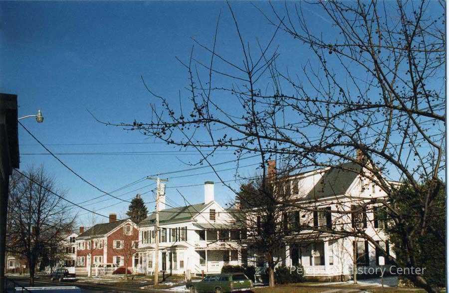 A color photo of (l-r) 11, 13, 17 and 19 Federal Street, Brunswick, taken from the Recreation Building.