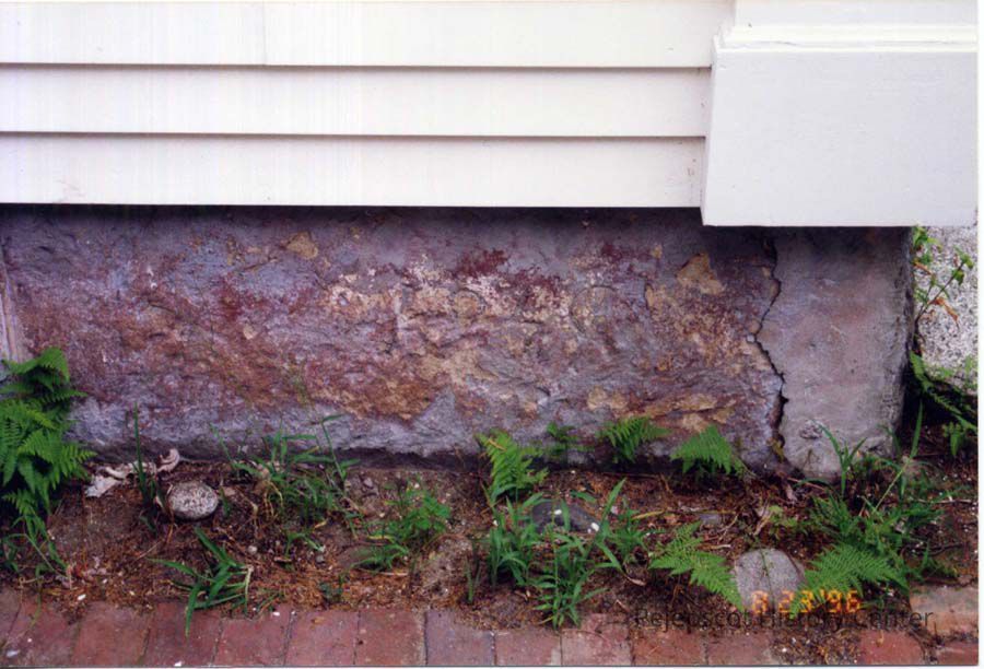 Color photo of the corner stone of 11 Dunning Street, inscribed 1849 and "C.P. Cobb," referring to the original owner of the house, Charles P. Cobb. 8/23/1996.