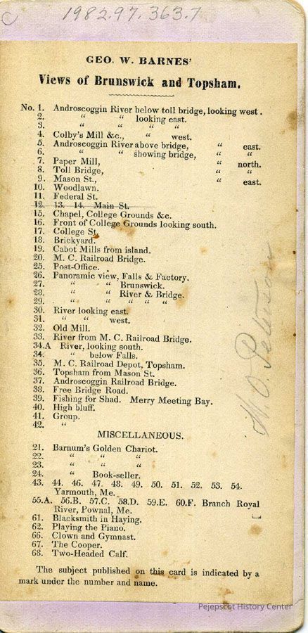 13 & 14 Main Street, Topsham, Maine, looking in the direction of the River. Stereopticon view, George W. Barnes, photographer.Lexicon