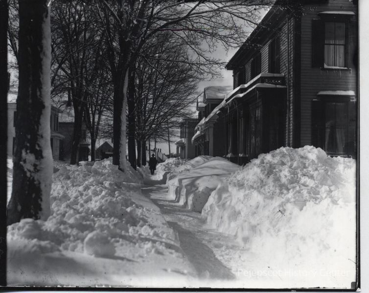 Photo of the view from near 16 High Street looking west, winter, Brunswick, Maine.